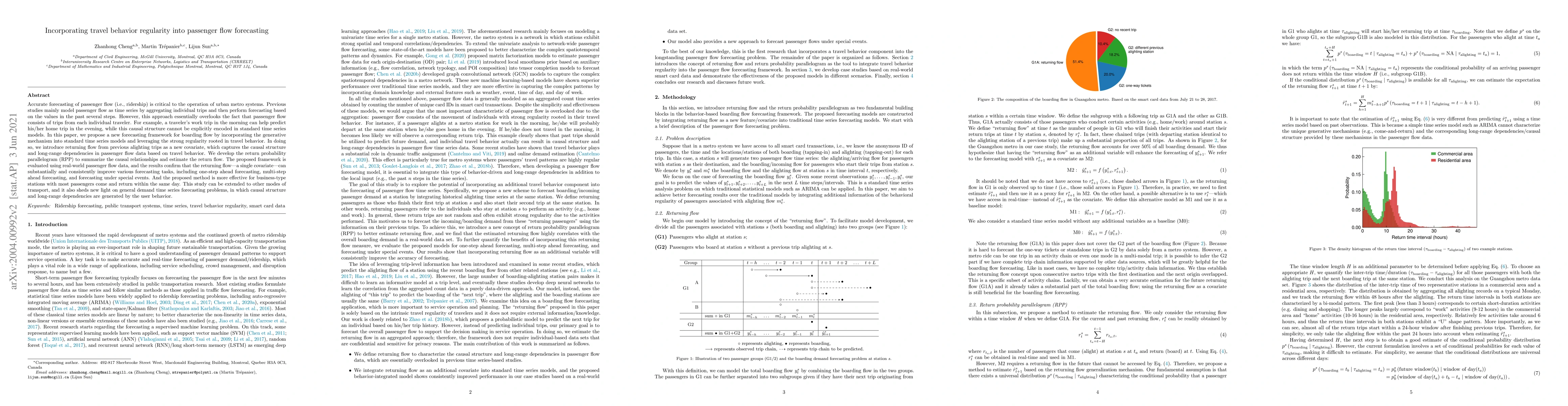 This paper proposes a new framework for forecasting passenger flow in urban metro systems by incorporating travel behavior regularity. It introduces a returning flow covariate to capture causal structures and long-range dependencies, significantly improving forecasting accuracy across various tasks and especially benefiting business-type stations.