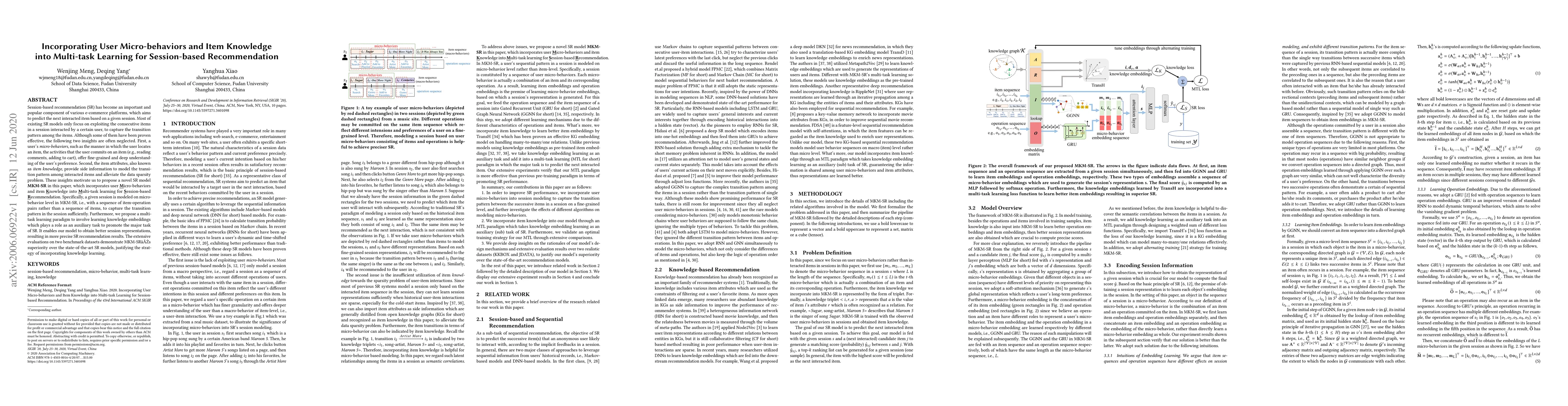 This paper proposes a novel session-based recommendation model, MKM-SR, which incorporates user micro-behaviors and item knowledge into multi-task learning to enhance session representation and improve recommendation accuracy. MKM-SR models sessions based on item-operation pairs, and uses multi-task learning to leverage item knowledge, achieving superior performance over existing models.