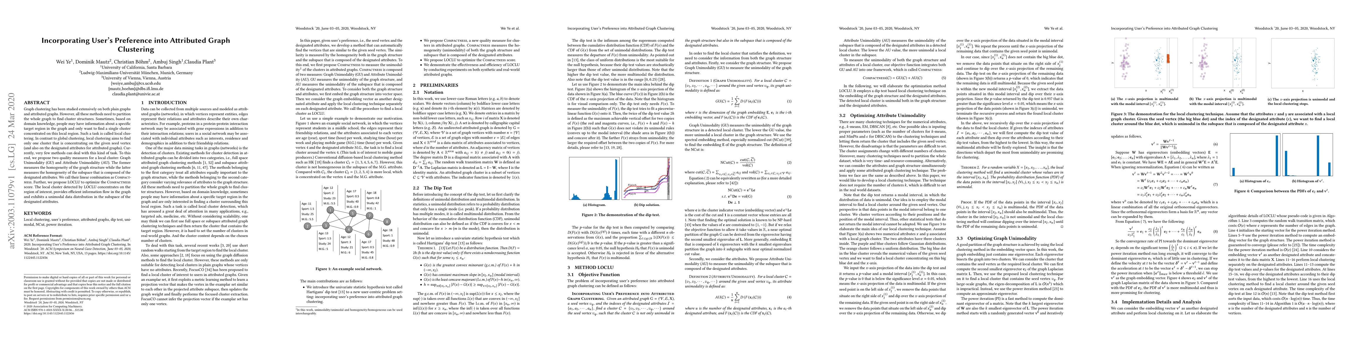 This paper proposes a method for local clustering in attributed graphs, focusing on a specific target region. It introduces two quality measures, Graph Unimodality (GU) and Attribute Unimodality (AU), and a combined measure called Compactness to optimize the clustering. The proposed LOCLU algorithm aims to find a single cluster concentrated on the given seed vertex and designated attributes.