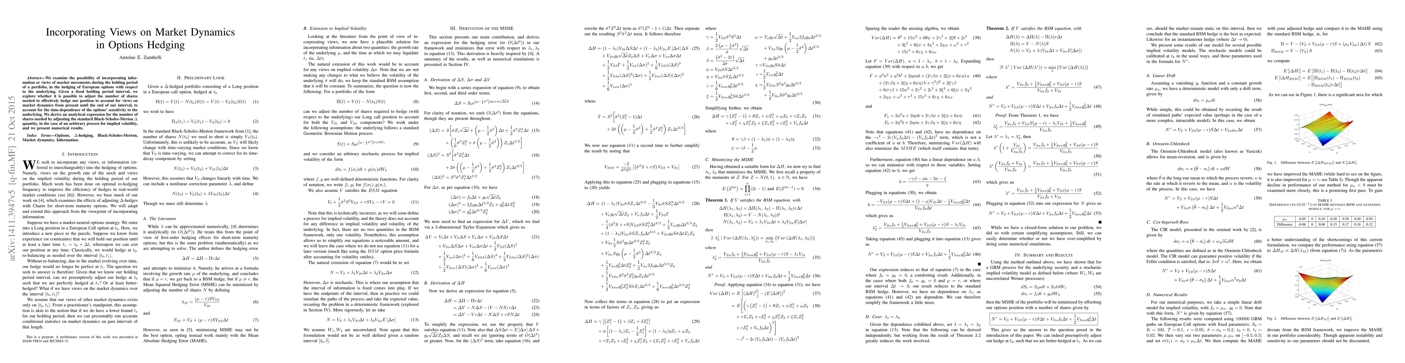 We examine the possibility of incorporating information or views of market movements during the holding period of a portfolio, in the hedging of European options with respect to the underlying. Given a fixed holding period interval, we explore whether it is possible to adjust the number of shares needed to effectively hedge our position to account for views on market dynamics from present until the end of our interval, to account for the time-dependence of the options' sensitivity to the underlying. We derive an analytical expression for the number of shares needed by adjusting the standard Black-Scholes-Merton $\Delta$ quantity, in the case of an arbitrary process for implied volatility, and we present numerical results.