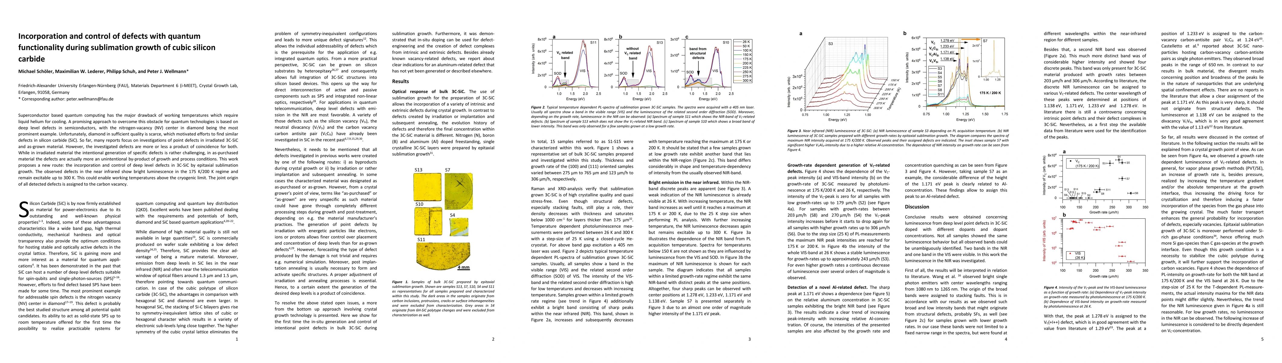 This paper explores a novel method for epitaxial sublimation growth of cubic silicon carbide (3C-SiC) to intentionally incorporate and control deep-level defects, specifically carbon vacancies, which exhibit bright luminescence and potential quantum functionality at temperatures above 175 K, potentially advancing quantum technologies beyond cryogenic limits.