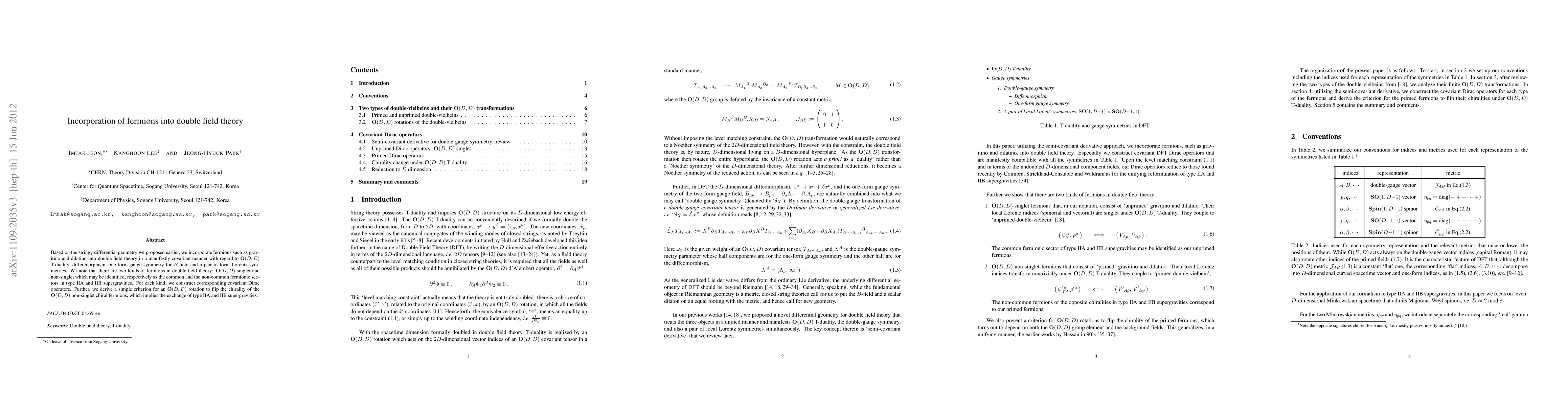 Based on the stringy differential geometry we proposed earlier, we incorporate fermions such as gravitino and dilatino into double field theory in a manifestly covariant manner with regard to O(D,D) T-duality, diffeomorphism, one-form gauge symmetry for B-field and a pair of local Lorentz symmetries. We note that there are two kinds of fermions in double field theory: O(D,D) singlet and non-singlet which may be identified, respectively as the common and the non-common fermionic sectors in type IIA and IIB supergravities. For each kind, we construct corresponding covariant Dirac operators. Further, we derive a simple criterion for an O(D,D) rotation to flip the chirality of the O(D,D) non-singlet chiral fermions, which implies the exchange of type IIA and IIB supergravities.
