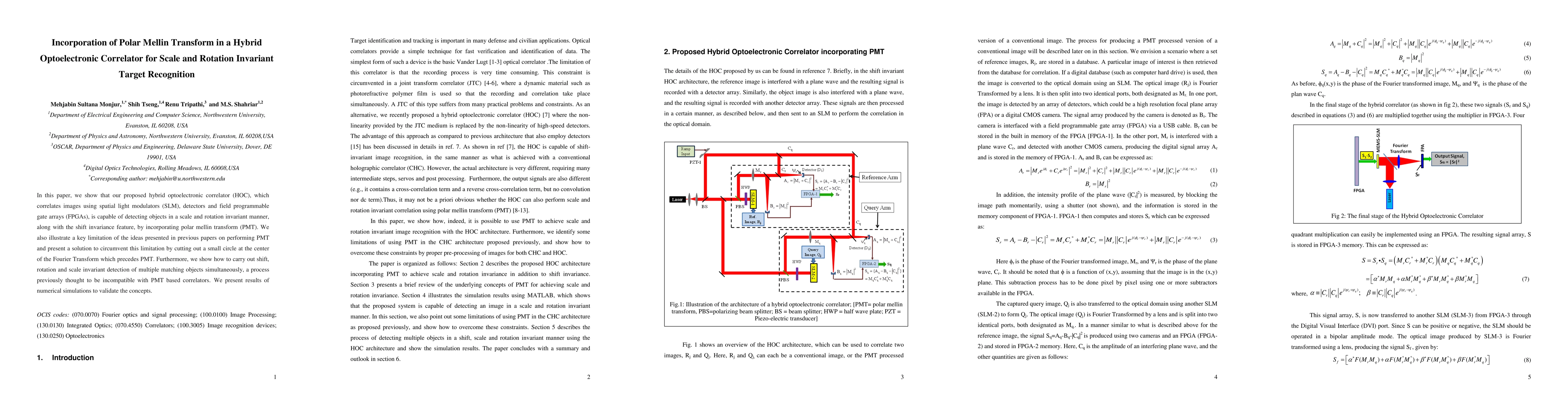 This paper proposes a hybrid optoelectronic correlator (HOC) that uses polar mellin transform (PMT) for scale and rotation invariant target recognition, overcoming previous limitations by preprocessing the Fourier Transform. Numerical simulations validate its ability to detect multiple objects simultaneously.