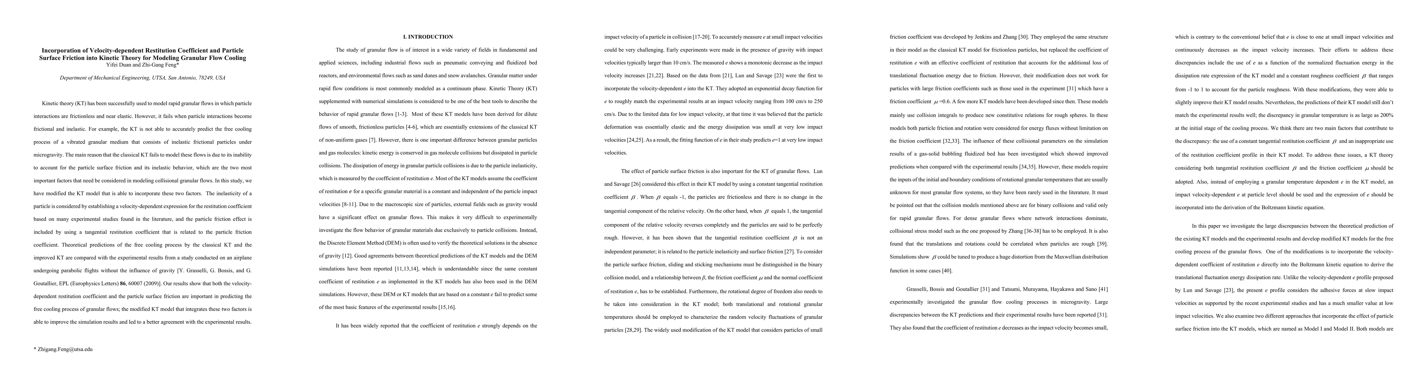 This paper modifies kinetic theory to model granular flows by incorporating velocity-dependent restitution coefficients and particle surface friction, improving predictions of inelastic frictional particle interactions. The modified model shows better agreement with experimental results on vibrated granular media under microgravity conditions compared to the classical kinetic theory.