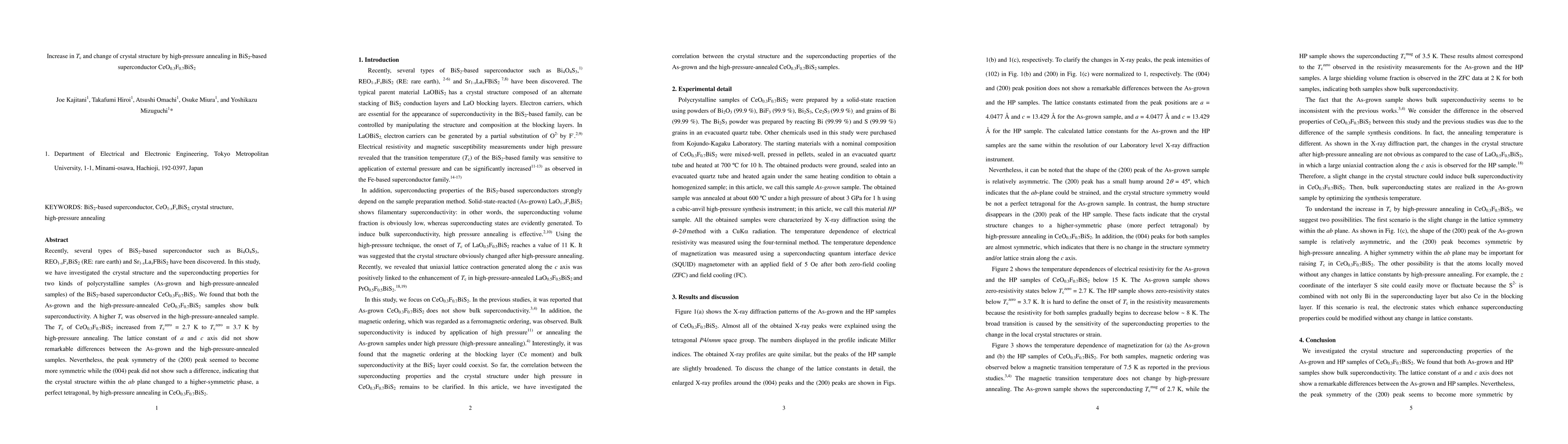 This study investigates the effects of high-pressure annealing on the crystal structure and superconducting properties of BiS2-based superconductor CeO0.3F0.7BiS2. The Tc increased from 2.7 K to 3.7 K, and the crystal structure within the ab plane transitioned to a higher-symmetric tetragonal phase.