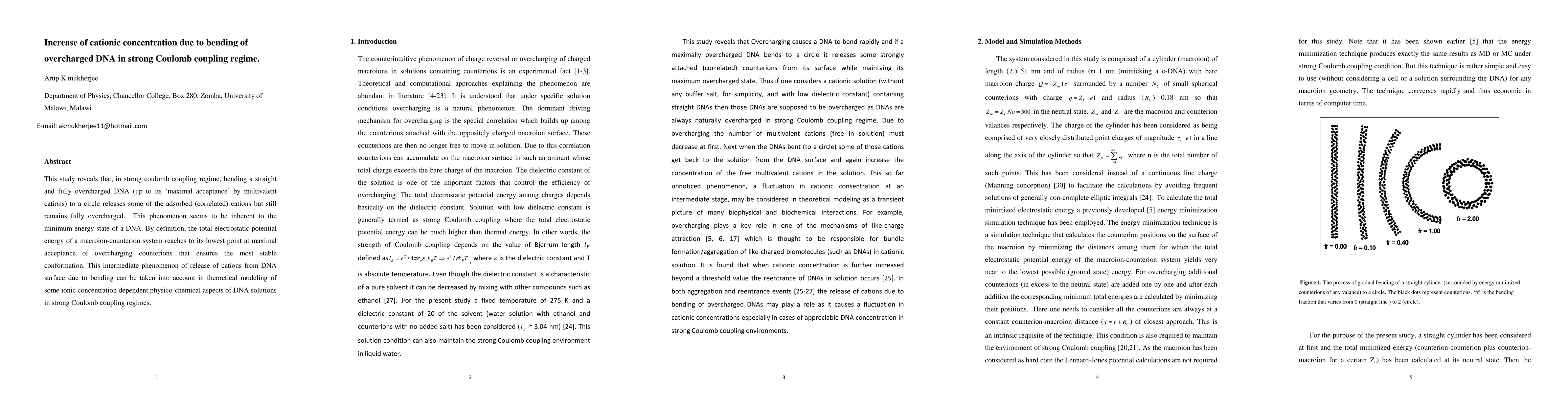 This study finds that bending overcharged DNA into a circle in a strong Coulomb coupling regime releases some counterions while maintaining full overcharging, indicating a stable minimum energy state. This intermediate release of cations can inform theoretical models of ionic concentration in DNA solutions.