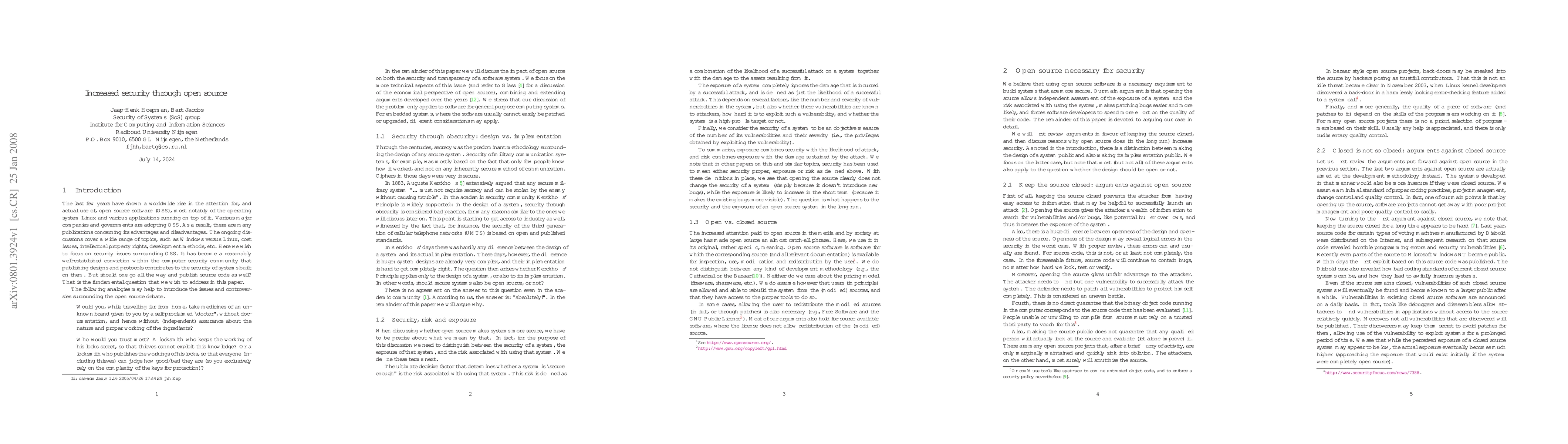 This paper explores how open source software impacts security and transparency, focusing on general-purpose computing systems. It discusses key considerations for improving security through open source.