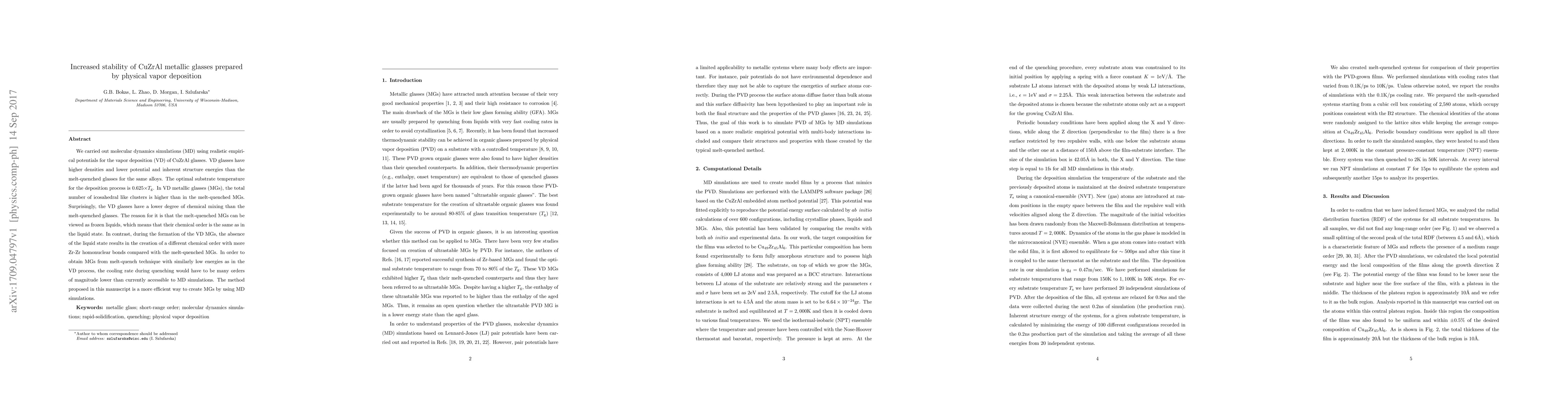 A combination of molecular dynamics simulations and experimental techniques were used to study the formation and properties of glassy materials.