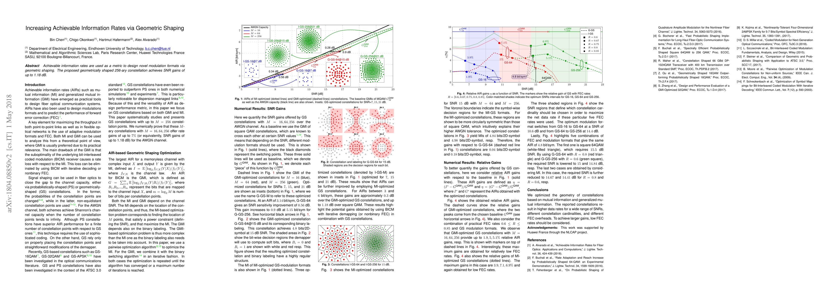 Achievable information rates are used as a metric to design novel modulation formats via geometric shaping. The proposed geometrically shaped 256-ary constellation achieves SNR gains of up to 1.18 dB.