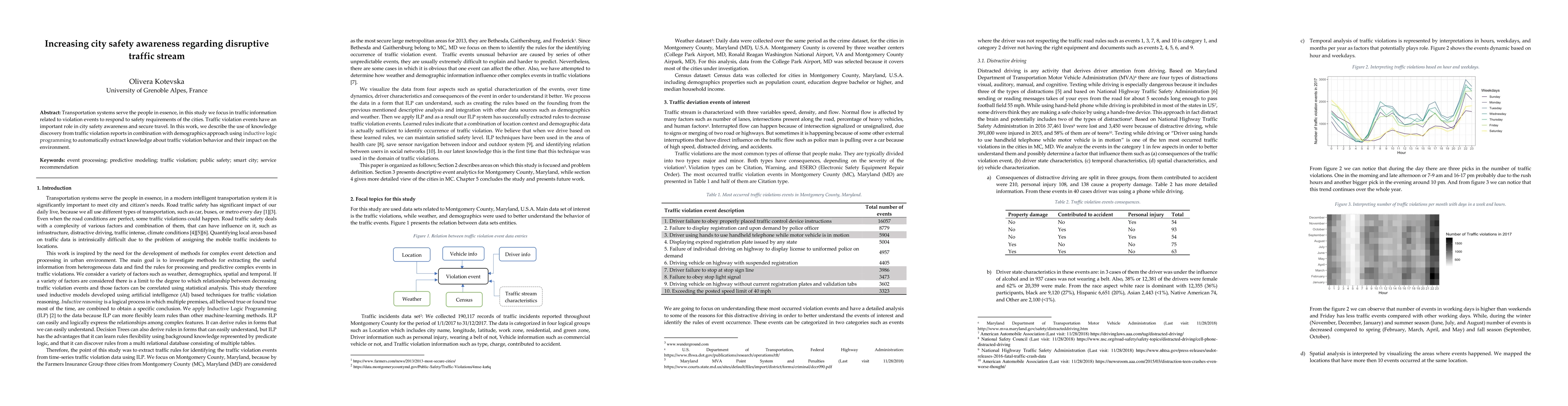 Transportation systems serve the people in essence, in this study we focus in traffic information related to violation events to respond to safety requirements of the cities. Traffic violation events have an important role in city safety awareness and secure travel. In this work, we describe the use of knowledge discovery from traffic violation reports in combination with demographics approach using inductive logic programming to automatically extract knowledge about traffic violation behavior and their impact on the environment.