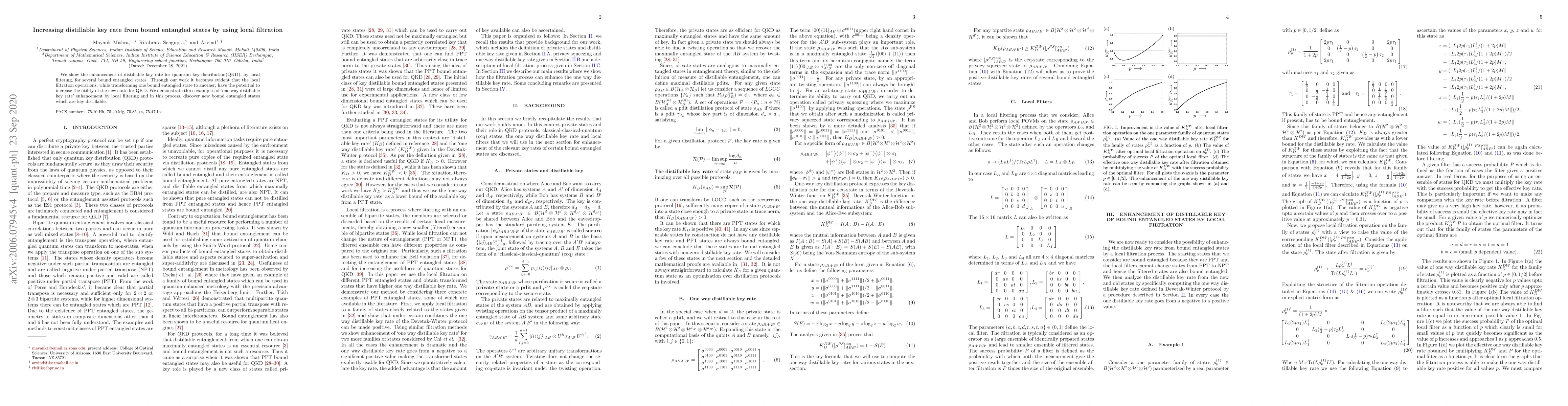 This paper demonstrates that local filtration can enhance the distillable key rate for quantum key distribution (QKD) using bound entangled states. The study shows that local filtration operations can transform bound entangled states into new ones with higher utility for QKD, exemplified by three specific cases.