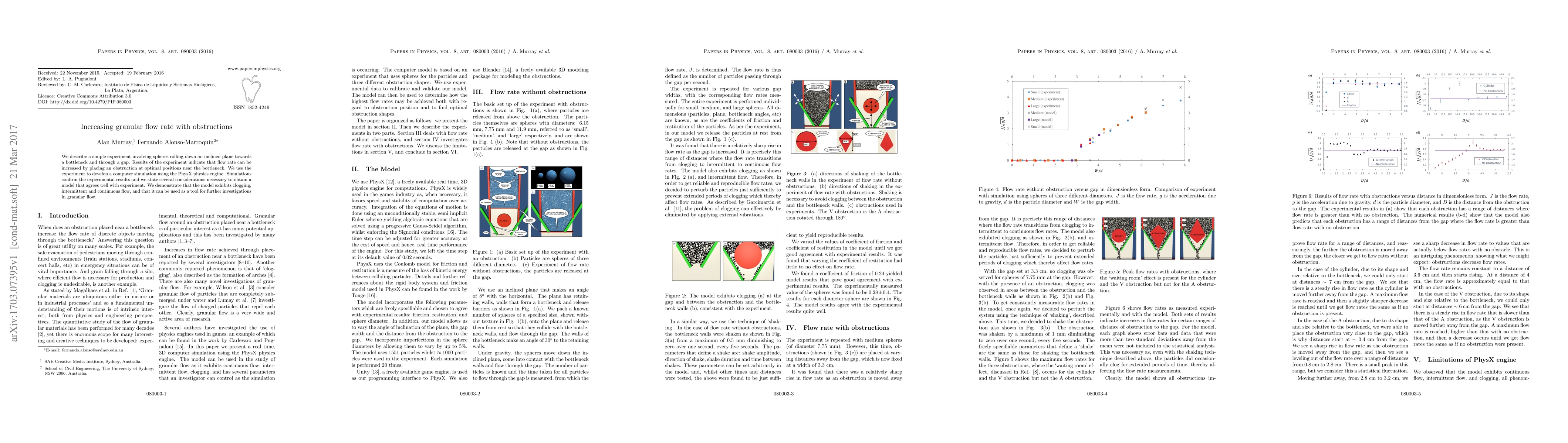 We describe a simple experiment involving spheres rolling down an inclined plane towards a bottleneck and through a gap. Results of the experiment indicate that flow rate can be increased by placing an obstruction at optimal positions near the bottleneck. We use the experiment to develop a computer simulation using the PhysX physics engine. Simulations confirm the experimental results and we state several considerations necessary to obtain a model that agrees well with experiment. We demonstrate that the model exhibits clogging, intermittent and continuous flow, and that it can be used as a tool for further investigations in granular flow.