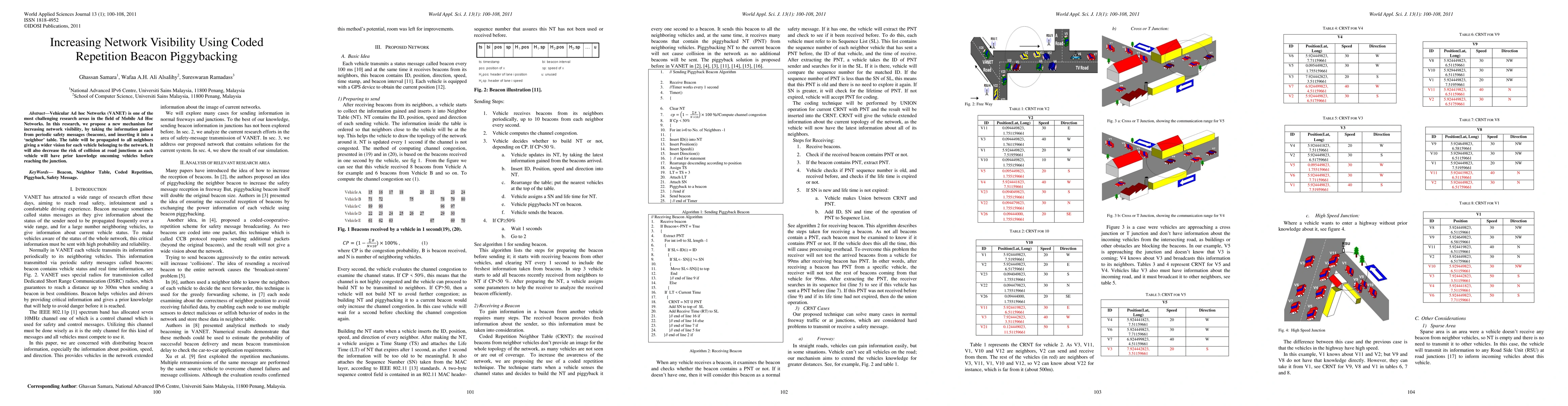 Vehicular Ad hoc Networks (VANET) is one of the most challenging research areas in the field of Mobile Ad Hoc Networks. In this research, we propose a new mechanism for increasing network visibility, by taking the information gained from periodic safety messages (beacons), and inserting it into a 'neighbor' table. The table will be propagated to all neighbors giving a wider vision for each vehicle belonging to the network. It will also decrease the risk of collision at road junctions as each vehicle will have prior knowledge oncoming vehicles before reaching the junction.