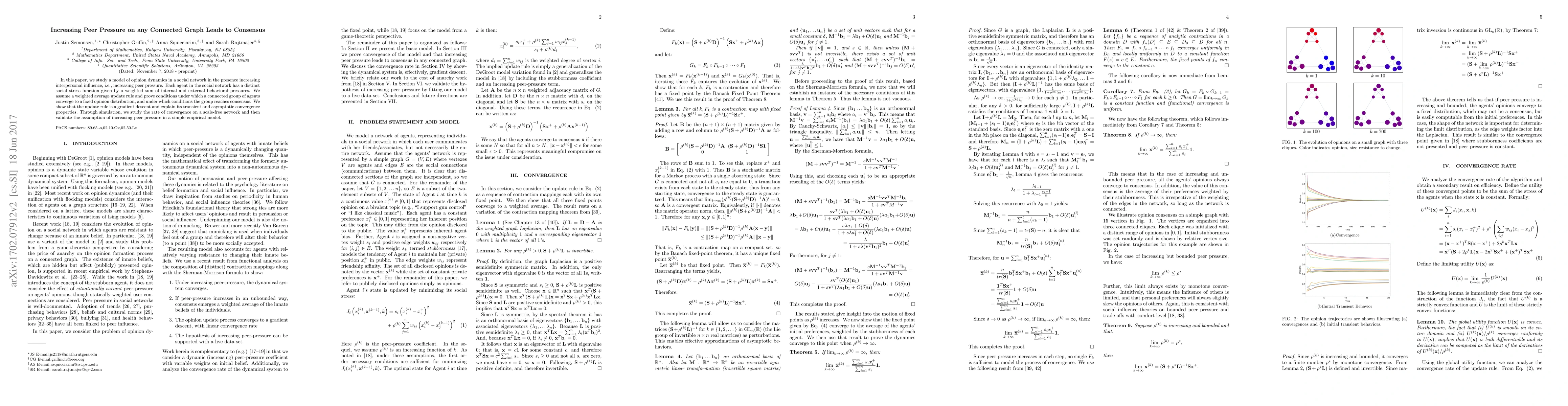 Increasing peer pressure in a social network leads to consensus if agents update their opinions based on a weighted average of internal and external pressures. Simulation studies validate the model's predictions for scale-free networks and simple empirical models.