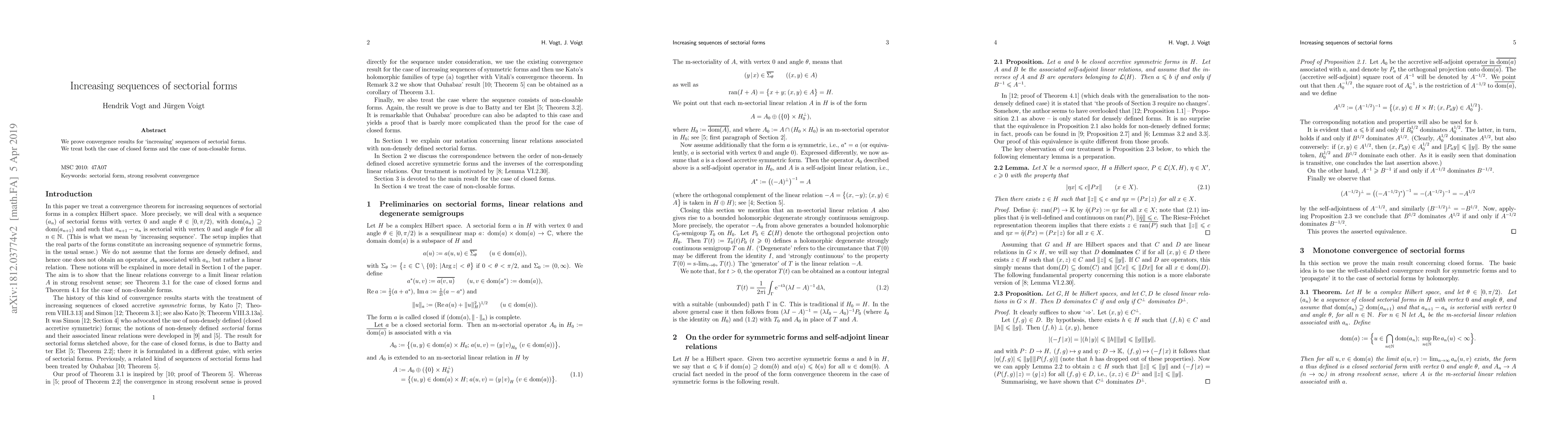 Summary: This paper establishes convergence results for increasing sequences of sectorial forms, addressing both closed and non-closable forms. The findings contribute to the understanding of the behavior of such sequences in functional analysis.
