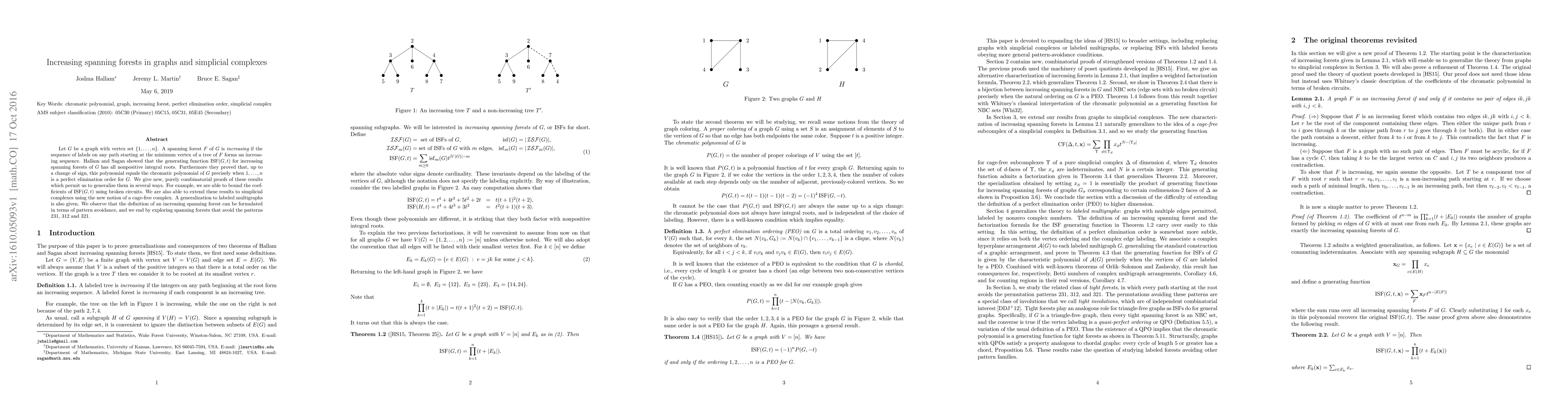 Researchers developed new proofs for a theorem about spanning forests in graphs, showing they can bound coefficients using broken circuits and extend the results to simplicial complexes and labeled multigraphs. They also explored modified versions of the increasing condition, avoiding specific patterns.