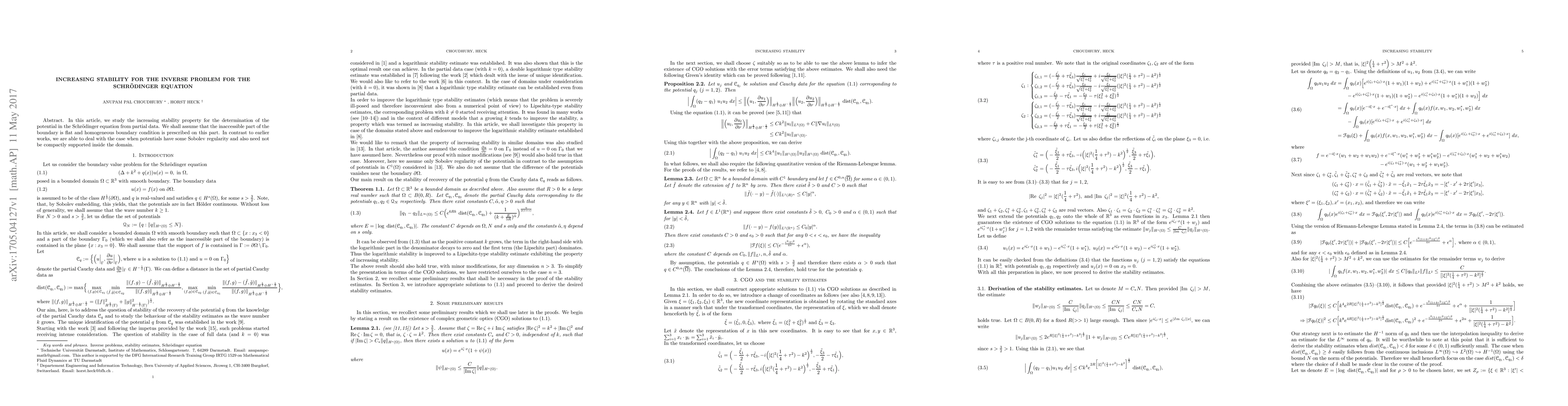 This paper investigates increasing stability for solving the Schr"odinger equation's inverse problem with partial data, allowing for potentials with Sobolev regularity and non-compact support.