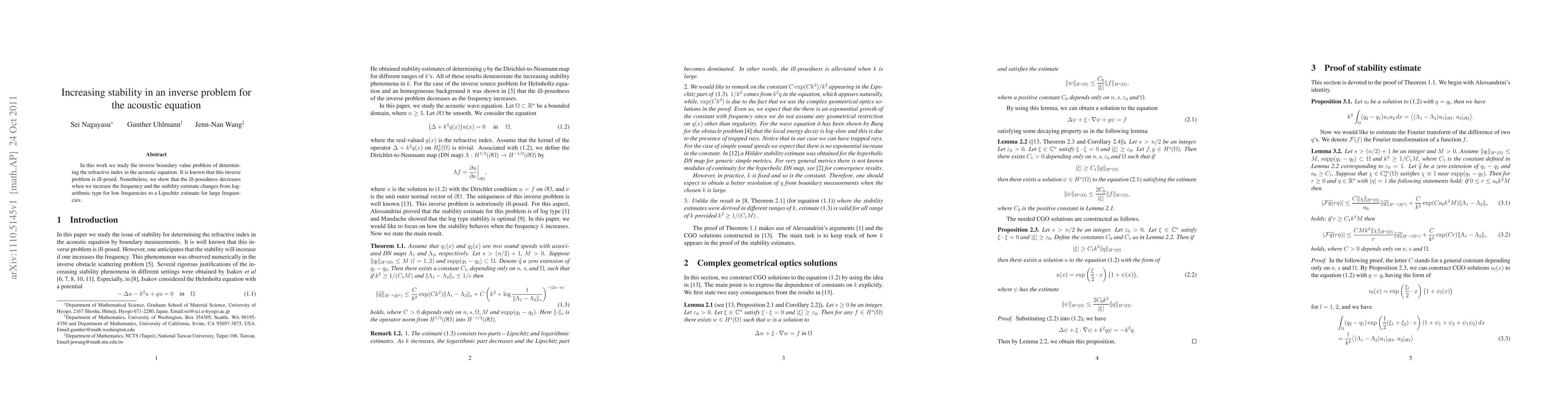 Researchers found that increasing frequency reduces ill-posedness in acoustic equation inverse problems, making stability estimates more predictable.