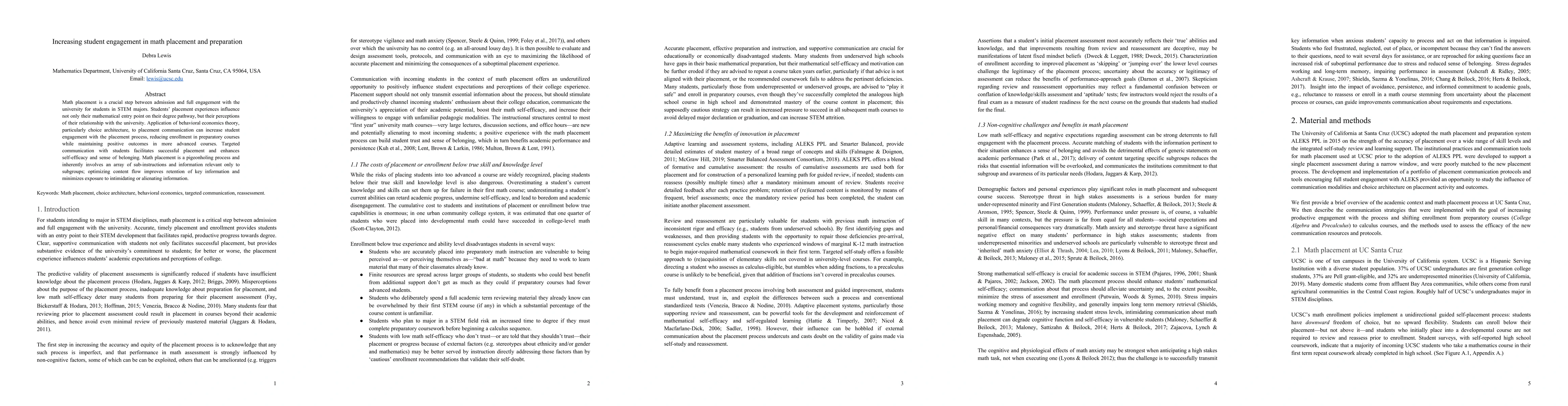 Math placement is a crucial step between admission and full engagement with the university for students in STEM majors. Students' placement experiences influence not only their mathematical entry point on their degree pathway, but their perceptions of their relationship with the university. Application of behavioral economics theory, particularly choice architecture, to placement communication can increase student engagement with the placement process, reducing enrollment in preparatory courses while maintaining positive outcomes in more advanced courses. Targeted communication with students facilitates successful placement and enhances self-efficacy and sense of belonging. Math placement is a pigeonholing process and inherently involves an array of sub-instructions and information relevant only to subgroups; optimizing content flow improves retention of key information and minimizes exposure to intimidating or alienating information.