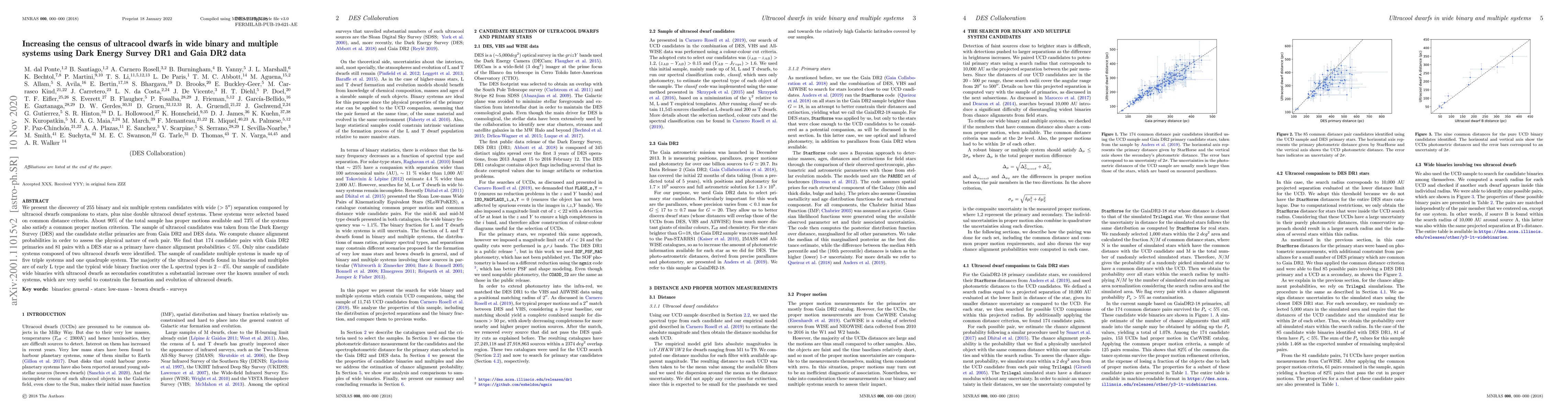 This study identifies 255 binary and six multiple wide systems composed of ultracool dwarf companions using Dark Energy Survey and Gaia data, significantly increasing the census of such systems. The majority of these ultracool dwarfs are early L types, with a notable fraction of 2-4% in wide binaries.