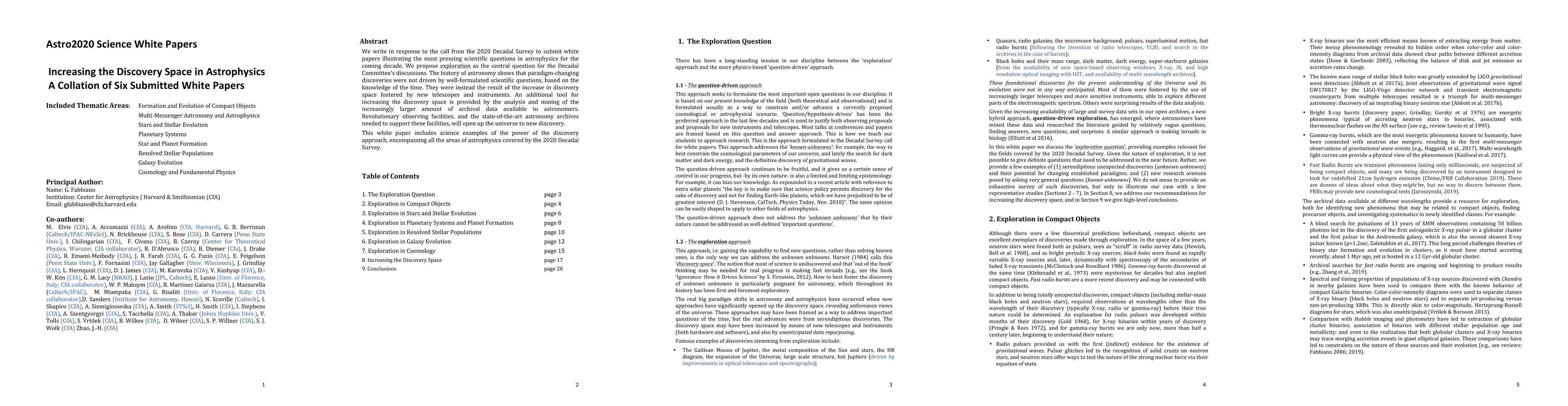 We write in response to the call from the 2020 Decadal Survey to submit white papers illustrating the most pressing scientific questions in astrophysics for the coming decade. We propose exploration as the central question for the Decadal Committee's discussions.The history of astronomy shows that paradigm changing discoveries are not driven by well formulated scientific questions, based on the knowledge of the time. They were instead the result of the increase in discovery space fostered by new telescopes and instruments. An additional tool for increasing the discovery space is provided by the analysis and mining of the increasingly larger amount of archival data available to astronomers. Revolutionary observing facilities, and the state of the art astronomy archives needed to support these facilities, will open up the universe to new discovery. Here we focus on exploration for compact objects and multi messenger science. This white paper includes science examples of the power of the discovery approach, encompassing all the areas of astrophysics covered by the 2020 Decadal Survey.