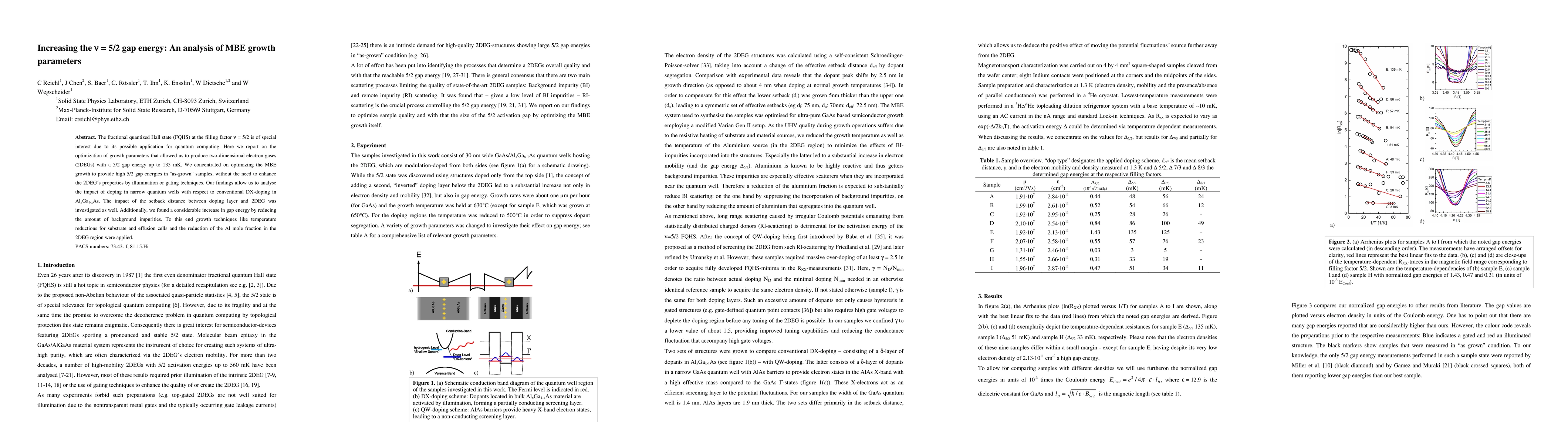 The fractional quantized Hall state (FQHS) at the filling factor {\nu} = 5/2 is of special interest due to its possible application for quantum computing. Here we report on the optimization of growth parameters that allowed us to produce two-dimensional electron gases (2DEGs) with a 5/2 gap energy up to 135 mK. We concentrated on optimizing the MBE growth to provide high 5/2 gap energies in "as-grown" samples, without the need to enhance the 2DEGs properties by illumination or gating techniques. Our findings allow us to analyse the impact of doping in narrow quantum wells with respect to conventional DX-doping in AlxGa1-xAs. The impact of the setback distance between doping layer and 2DEG was investigated as well. Additionally, we found a considerable increase in gap energy by reducing the amount of background impurities. To this end growth techniques like temperature reductions for substrate and effusion cells and the reduction of the Al mole fraction in the 2DEG region were applied.