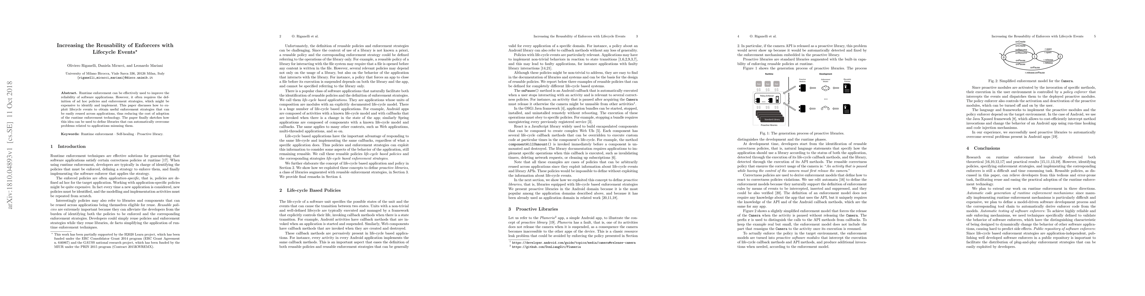 Runtime enforcement can be effectively used to improve the reliability of software applications. However, it often requires the definition of ad hoc policies and enforcement strategies, which might be expensive to identify and implement. This paper discusses how to exploit lifecycle events to obtain useful enforcement strategies that can be easily reused across applications, thus reducing the cost of adoption of the runtime enforcement technology. The paper finally sketches how this idea can be used to define libraries that can automatically overcome problems related to applications misusing them.
