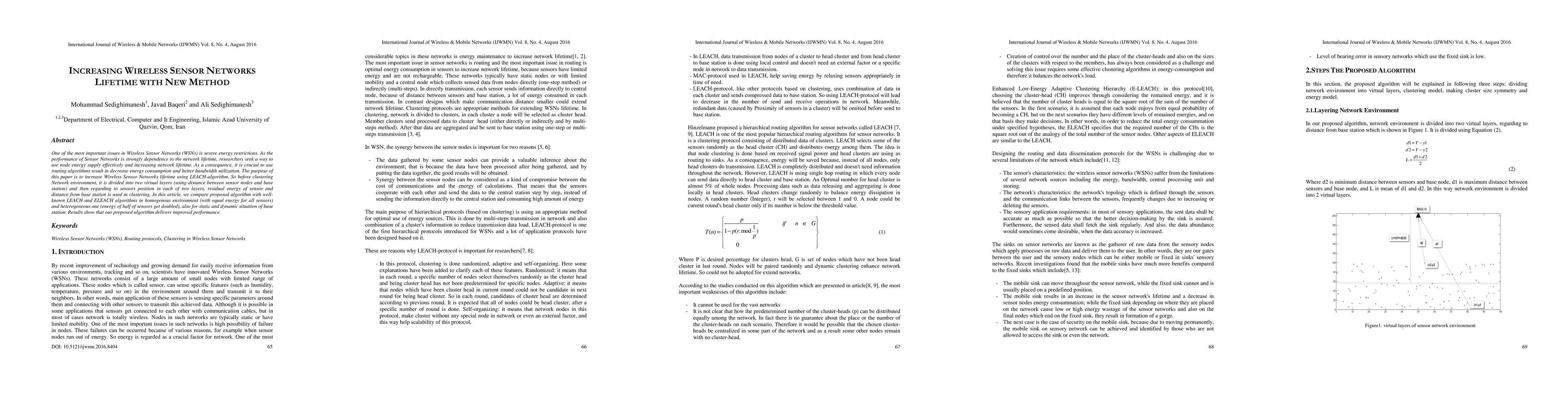 One of the most important issues in Wireless Sensor Networks (WSNs) is severe energy restrictions. As the performance of Sensor Networks is strongly dependence to the network lifetime, researchers seek a way to use node energy supply effectively and increasing network lifetime. As a consequence, it is crucial to use routing algorithms result in decrease energy consumption and better bandwidth utilization. The purpose of this paper is to increase Wireless Sensor Networks lifetime using LEACH-algorithm. So before clustering Network environment, it is divided into two virtual layers (using distance between sensor nodes and base station) and then regarding to sensors position in each of two layers, residual energy of sensor and distance from base station is used in clustering. In this article, we compare proposed algorithm with well-known LEACH and ELEACH algorithms in homogeneous environment (with equal energy for all sensors) and heterogeneous one (energy of half of sensors get doubled), also for static and dynamic situation of base station. Results show that our proposed algorithm delivers improved performance.