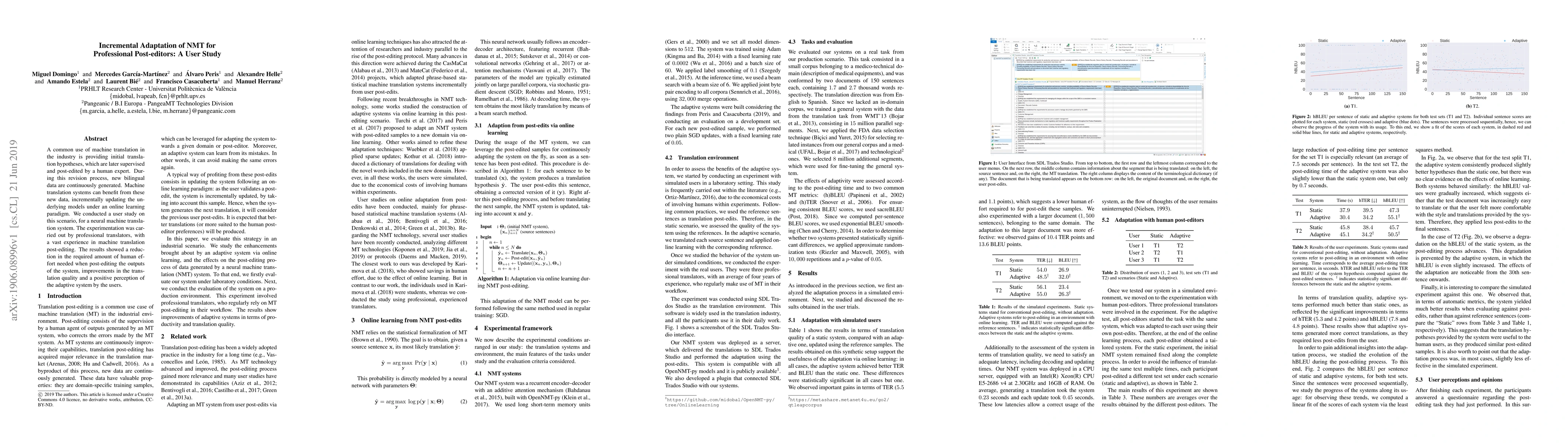 This study explores the incremental adaptation of neural machine translation (NMT) systems through online learning from post-editing data generated by professional translators. Results indicate reduced human effort, improved translation quality, and positive user perception of the adaptive system.