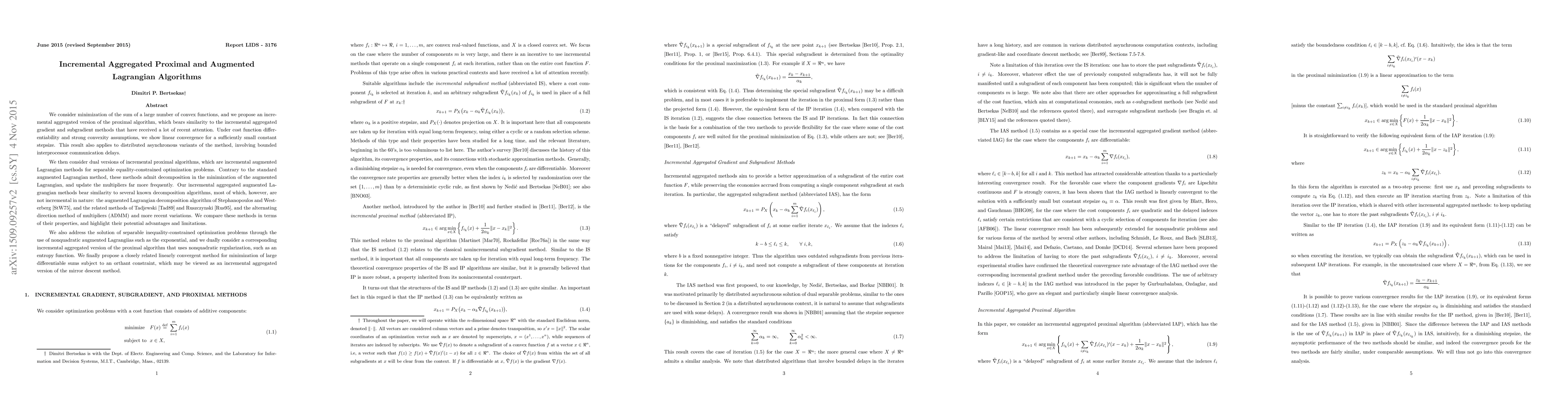 This paper proposes incremental aggregated versions of proximal and augmented Lagrangian algorithms for minimizing large sums of convex functions, demonstrating linear convergence under certain conditions. It also introduces distributed asynchronous variants and compares these methods to known decomposition algorithms, highlighting their advantages and limitations.