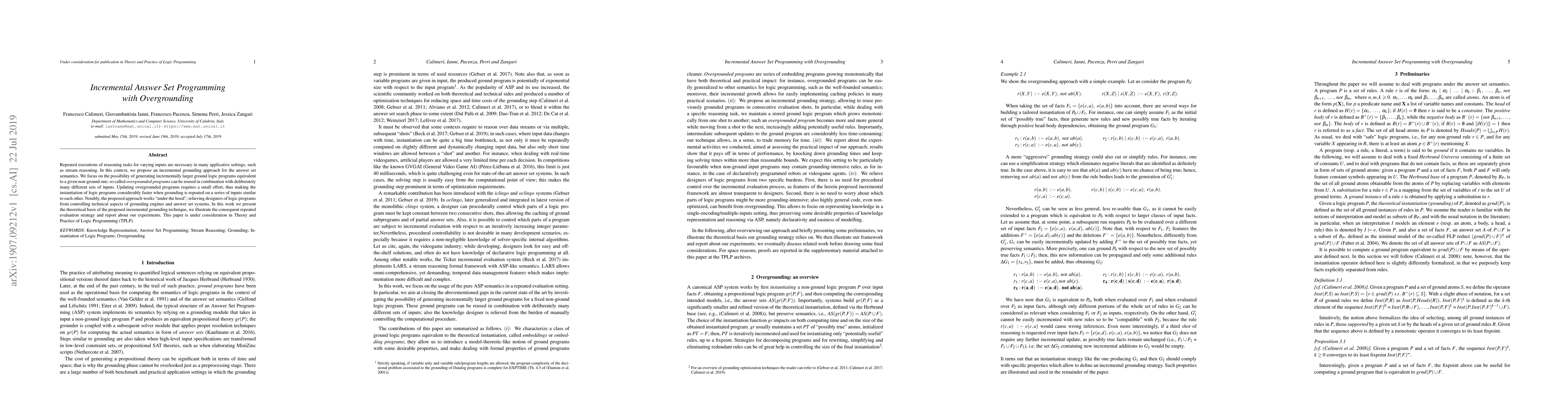 This research presents a novel approach to incremental answer set programming that leverages the idea of overgrounding to improve computational efficiency and accuracy.
