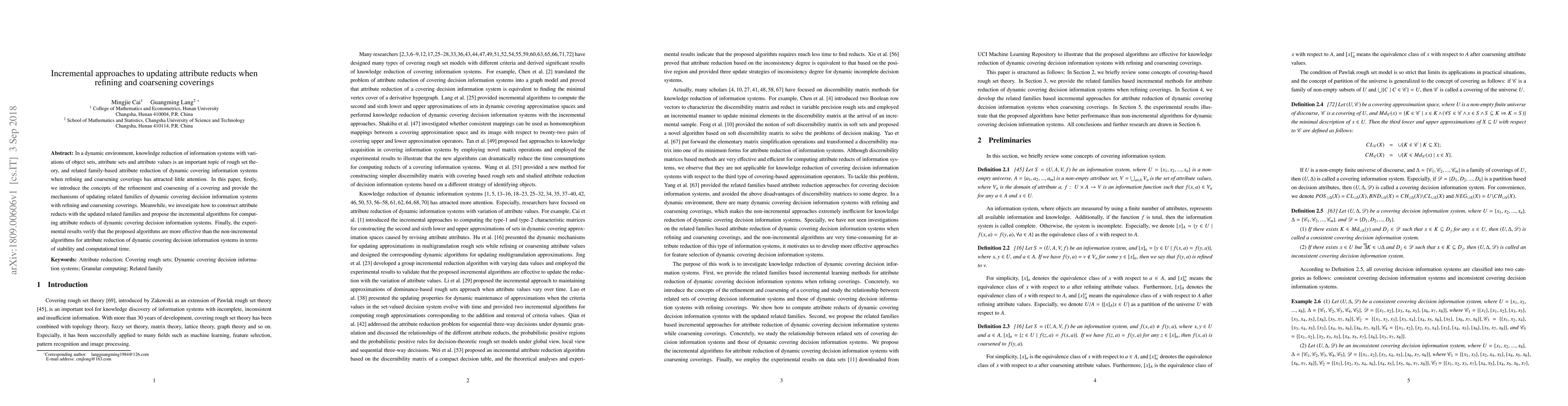 In a dynamic environment, knowledge reduction of information systems with variations of object sets, attribute sets and attribute values is an important topic of rough set theory, and related family-based attribute reduction of dynamic covering information systems when refining and coarsening coverings has attracted little attention. In this paper, firstly, we introduce the concepts of the refinement and coarsening of a covering and provide the mechanisms of updating related families of dynamic covering decision information systems with refining and coarsening coverings. Meanwhile, we investigate how to construct attribute reducts with the updated related families and propose the incremental algorithms for computing attribute reducts of dynamic covering decision information systems. Finally, the experimental results verify that the proposed algorithms are more effective than the non-incremental algorithms for attribute reduction of dynamic covering decision information systems in terms of stability and computational time.