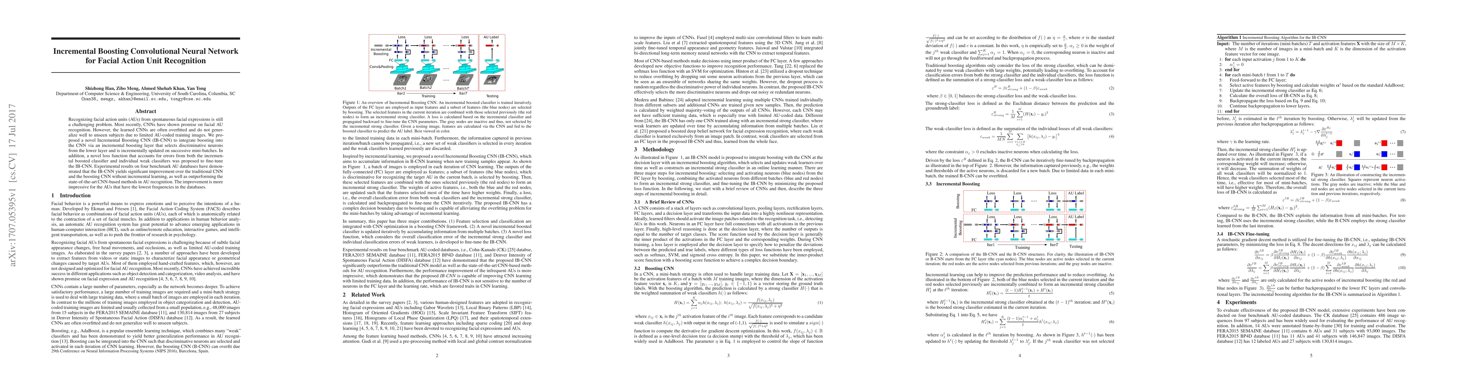 A new neural network architecture, Incremental Boosting CNN (IB-CNN), improves facial action unit recognition by combining boosting with convolutional neural networks, achieving significant improvements over traditional methods and outperforming state-of-the-art approaches.