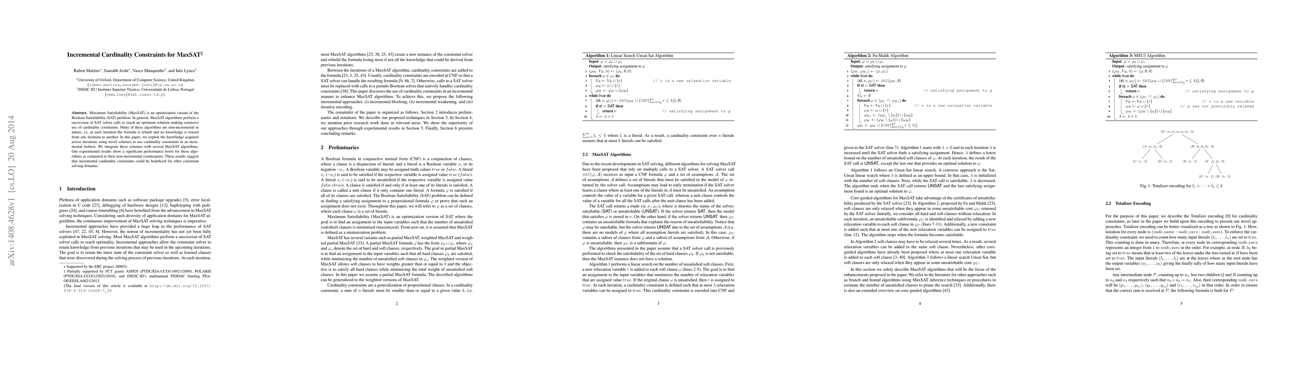 The paper presents novel incremental schemes for using cardinality constraints in MaxSAT algorithms, demonstrating their effectiveness through experimental results.