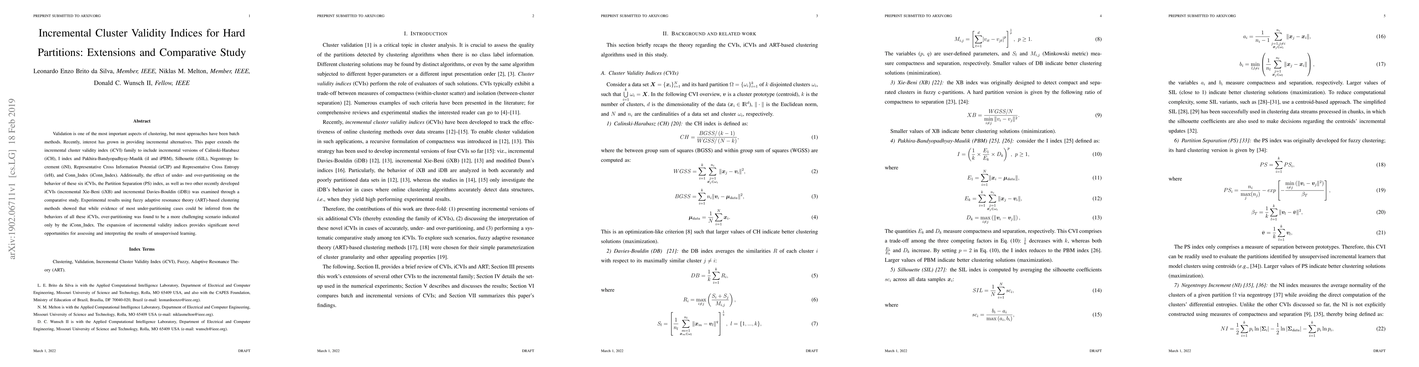 Validation is one of the most important aspects of clustering, but most approaches have been batch methods. Recently, interest has grown in providing incremental alternatives. This paper extends the incremental cluster validity index (iCVI) family to include incremental versions of Calinski-Harabasz (iCH), I index and Pakhira-Bandyopadhyay-Maulik (iI and iPBM), Silhouette (iSIL), Negentropy Increment (iNI), Representative Cross Information Potential (irCIP) and Representative Cross Entropy (irH), and Conn_Index (iConn_Index). Additionally, the effect of under- and over-partitioning on the behavior of these six iCVIs, the Partition Separation (PS) index, as well as two other recently developed iCVIs (incremental Xie-Beni (iXB) and incremental Davies-Bouldin (iDB)) was examined through a comparative study. Experimental results using fuzzy adaptive resonance theory (ART)-based clustering methods showed that while evidence of most under-partitioning cases could be inferred from the behaviors of all these iCVIs, over-partitioning was found to be a more challenging scenario indicated only by the iConn_Index. The expansion of incremental validity indices provides significant novel opportunities for assessing and interpreting the results of unsupervised learning.