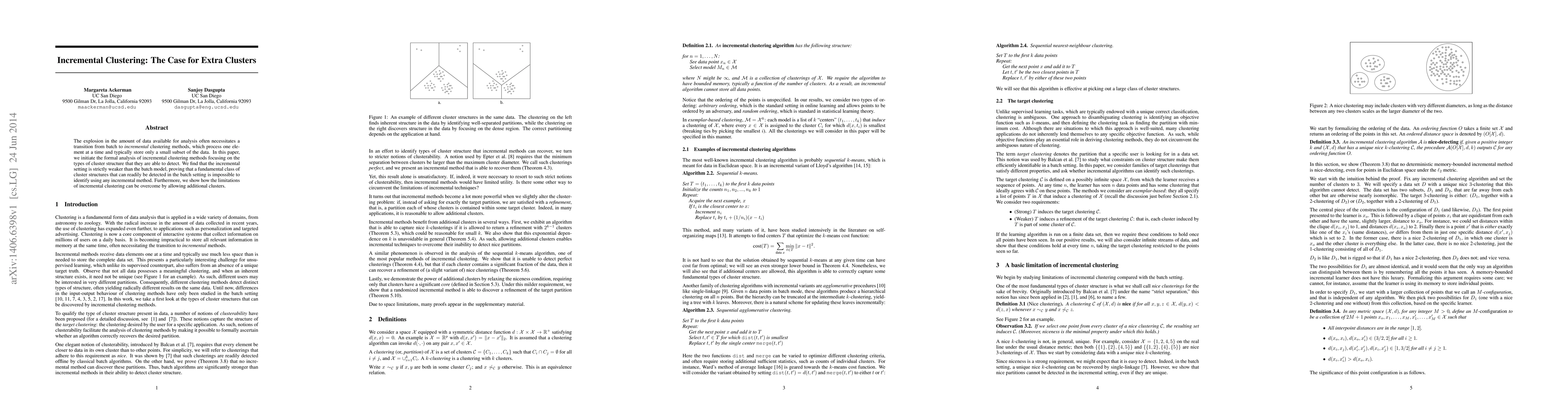 This paper explores the limitations of incremental clustering methods compared to batch clustering, demonstrating that certain cluster structures detectable in batch settings are unattainable in incremental methods. It proposes that allowing for extra clusters can help overcome these limitations.