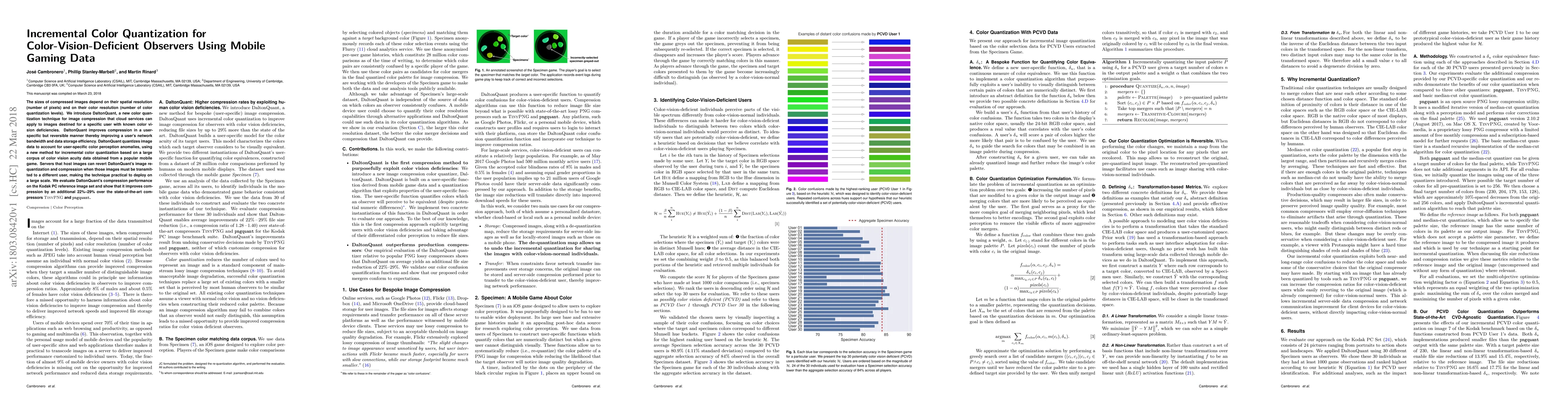 The sizes of compressed images depend on their spatial resolution (number of pixels) and on their color resolution (number of color quantization levels). We introduce DaltonQuant, a new color quantization technique for image compression that cloud services can apply to images destined for a specific user with known color vision deficiencies. DaltonQuant improves compression in a user-specific but reversible manner thereby improving a user's network bandwidth and data storage efficiency. DaltonQuant quantizes image data to account for user-specific color perception anomalies, using a new method for incremental color quantization based on a large corpus of color vision acuity data obtained from a popular mobile game. Servers that host images can revert DaltonQuant's image requantization and compression when those images must be transmitted to a different user, making the technique practical to deploy on a large scale. We evaluate DaltonQuant's compression performance on the Kodak PC reference image set and show that it improves compression by an additional 22%-29% over the state-of-the-art compressors TinyPNG and pngquant.