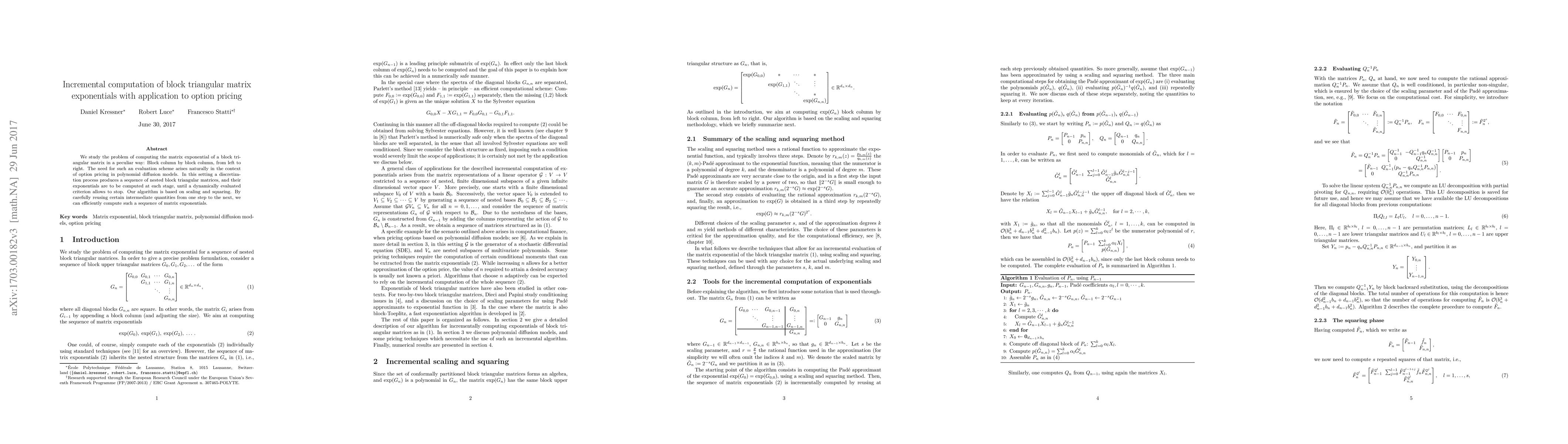 Researchers developed an efficient algorithm to compute matrix exponentials of block triangular matrices, with applications in option pricing, by leveraging scaling and squaring techniques.