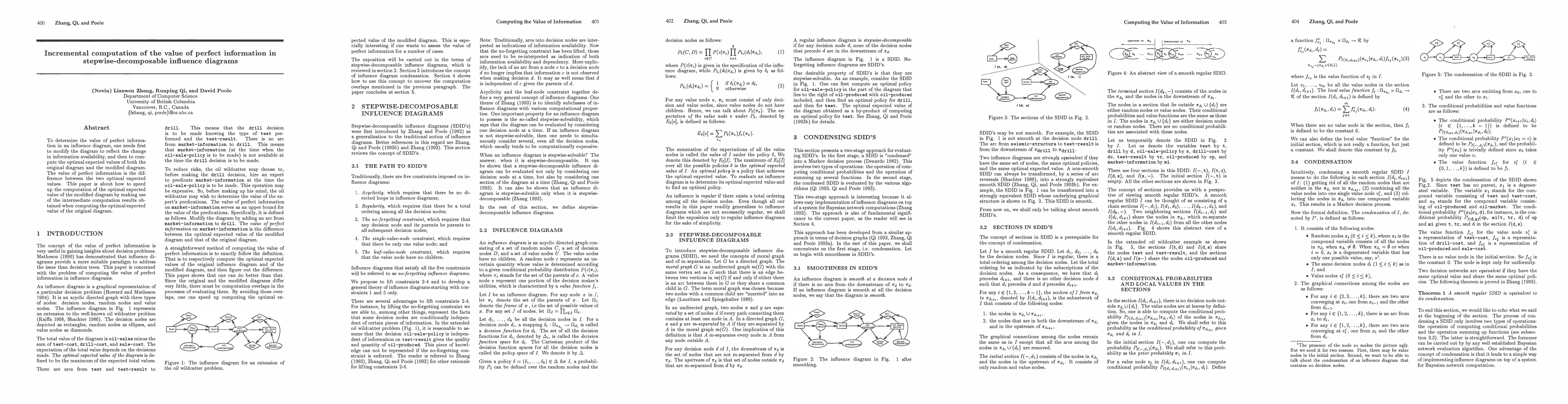 The development of an incremental computation method for evaluating modified SDID's, which can be used to compute the value of perfect information in influence diagrams