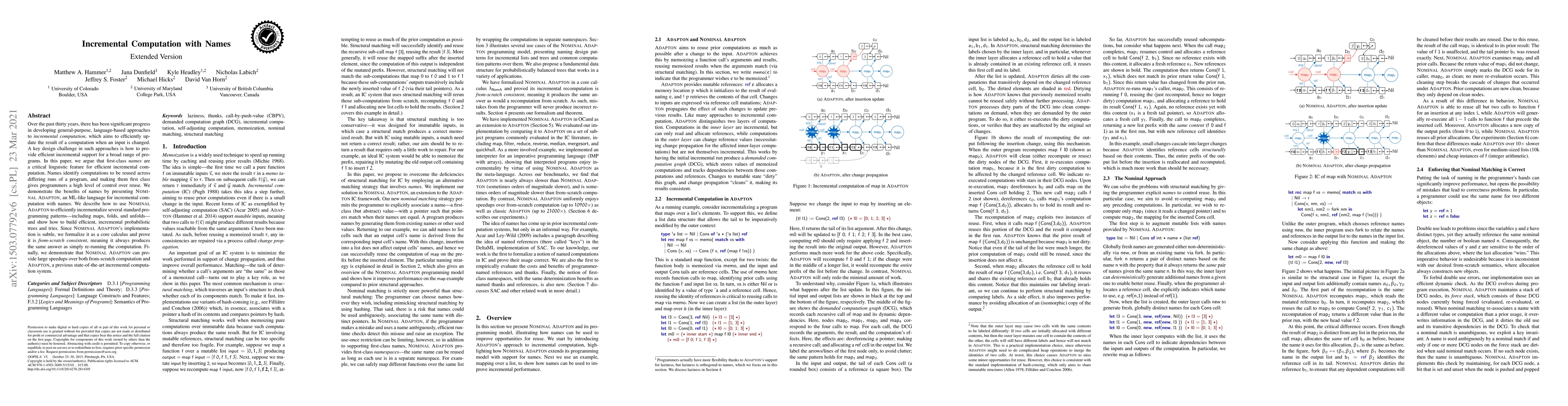 A new programming language called NOMINAL ADAPTON enables efficient incremental computation by making 'names' first-class, allowing for reusable computations across different program runs.