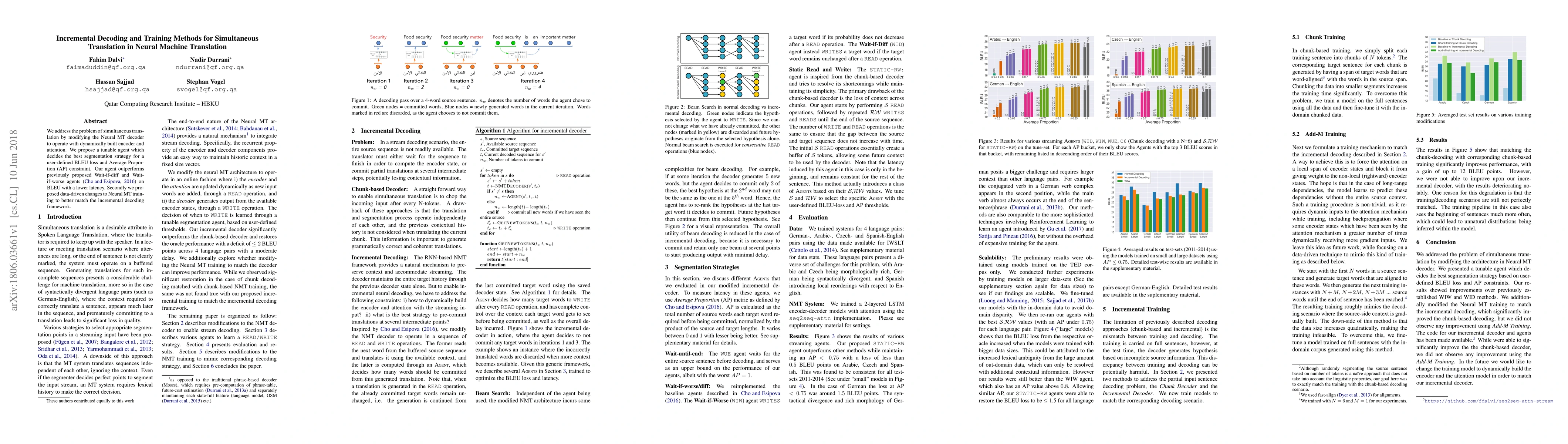 Researchers developed a new approach to simultaneous translation in neural machine translation, using a tunable agent to optimize segmentation strategy for better performance and lower latency. They also introduced data-driven changes to Neural MT training to match the incremental decoding framework.