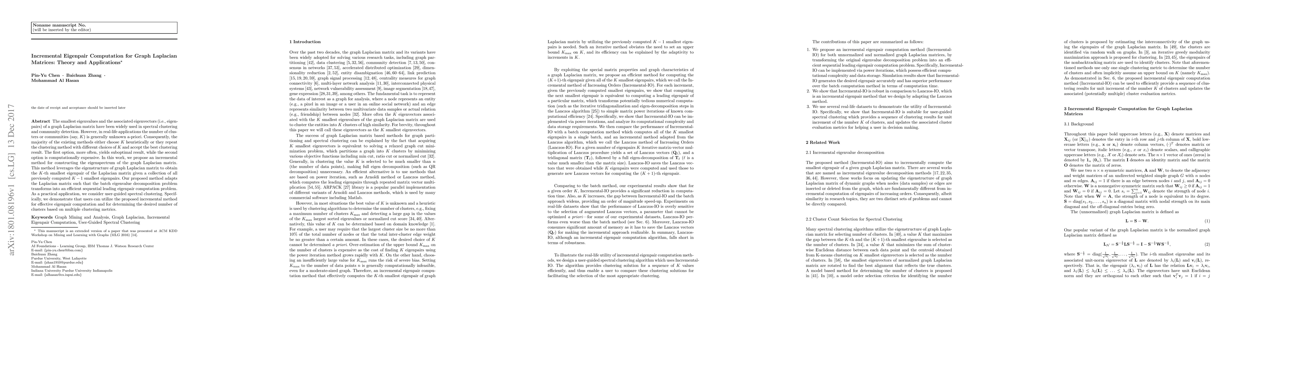 This paper proposes an incremental method for computing the eigenpairs of graph Laplacian matrices, enabling efficient determination of the $K$-th smallest eigenpair without recomputing from scratch. The method adapts the Laplacian matrix to transform the batch eigenvalue problem into a sequential leading eigenpair computation, facilitating user-guided spectral clustering.
