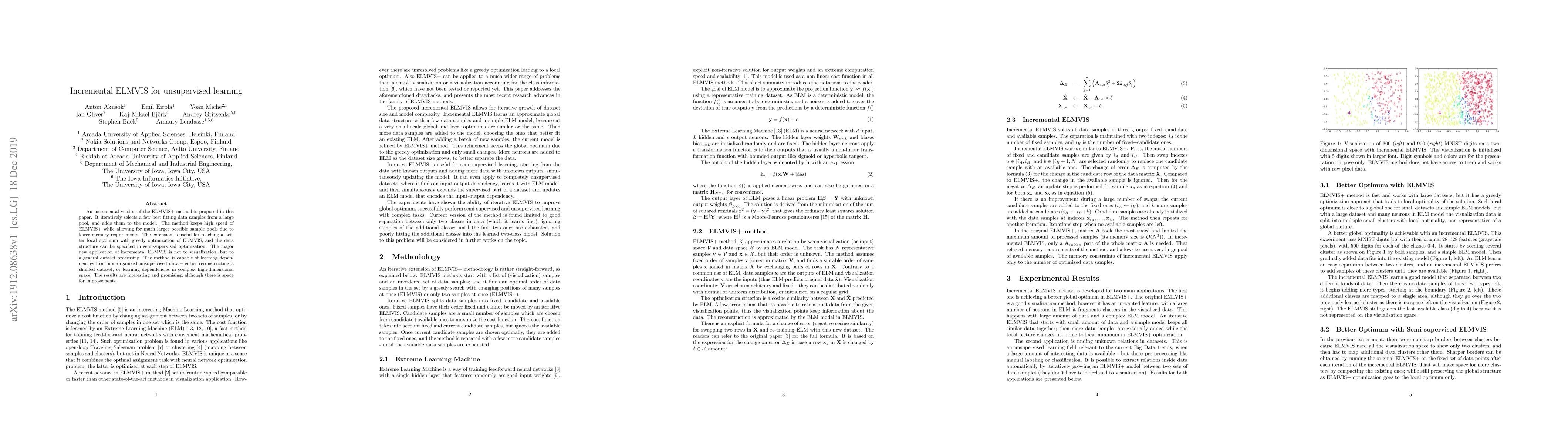Researchers propose an incremental version of ELMVIS for unsupervised learning, allowing for larger sample pools with lower memory requirements and promising applications in dataset processing and dependency learning from non-organized data.