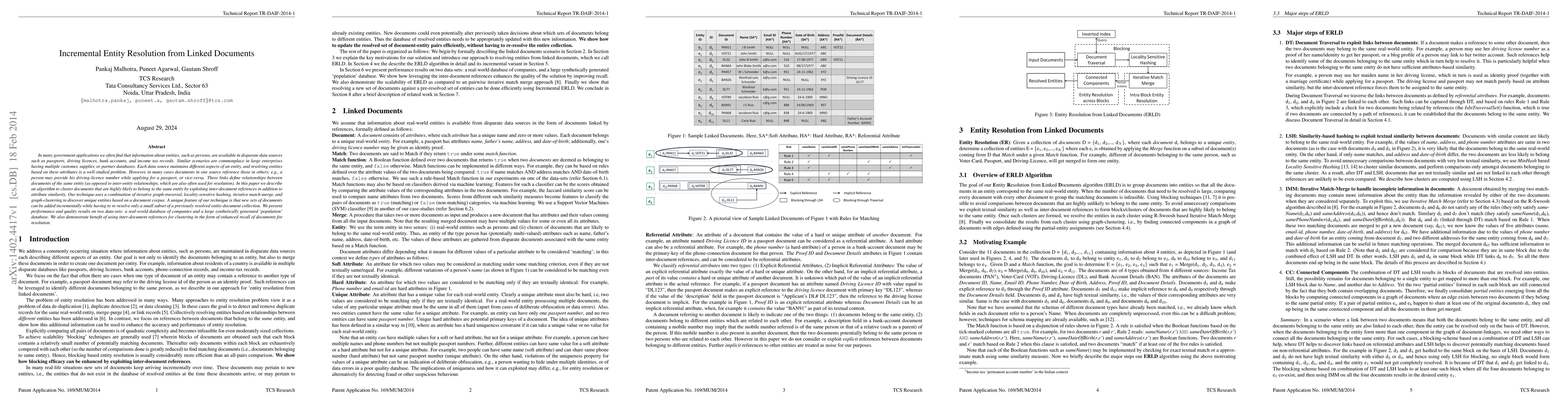 The research presents an algorithm, ERLD, for entity resolution from linked documents using a combination of iterative graph-traversal, locality-sensitive hashing, iterative match-merge, and graph-clustering. It also describes how to modify this batch-mode solution for incremental entity resolution.