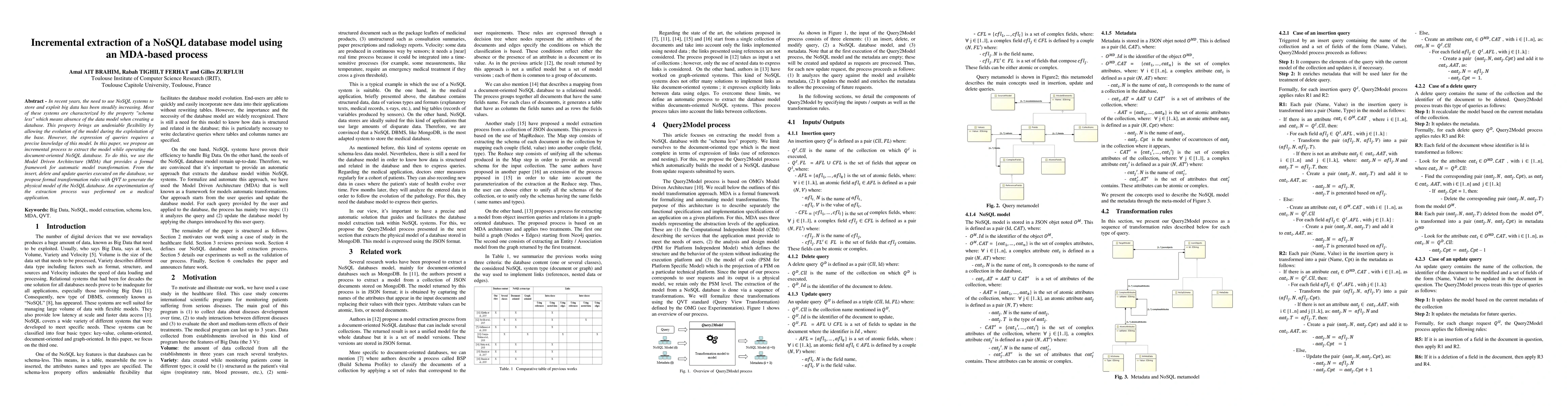 In recent years, the need to use NoSQL systems to store and exploit big data has been steadily increasing. Most of these systems are characterized by the property "schema less" which means absence of the data model when creating a database. This property brings an undeniable flexibility by allowing the evolution of the model during the exploitation of the base. However, the expression of queries requires a precise knowledge of this model. In this paper, we propose an incremental process to extract the model while operating the document-oriented NoSQL database. To do this, we use the Model Driven Architecture (MDA) that provides a formal framework for automatic model transformation. From the insert, delete and update queries executed on the database, we propose formal transformation rules with QVT to generate the physical model of the NoSQL database. An experimentation of the extraction process was performed on a medical application.