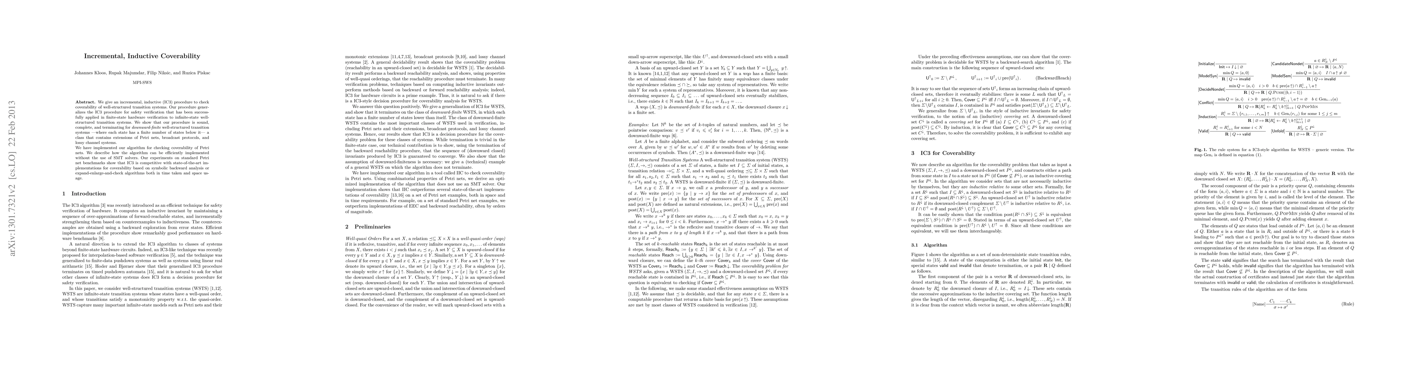 We give an incremental, inductive (IC3) procedure to check coverability of well-structured transition systems. Our procedure generalizes the IC3 procedure for safety verification that has been successfully applied in finite-state hardware verification to infinite-state well-structured transition systems. We show that our procedure is sound, complete, and terminating for downward-finite well-structured transition systems---where each state has a finite number of states below it---a class that contains extensions of Petri nets, broadcast protocols, and lossy channel systems. We have implemented our algorithm for checking coverability of Petri nets. We describe how the algorithm can be efficiently implemented without the use of SMT solvers. Our experiments on standard Petri net benchmarks show that IC3 is competitive with state-of-the-art implementations for coverability based on symbolic backward analysis or expand-enlarge-and-check algorithms both in time taken and space usage.