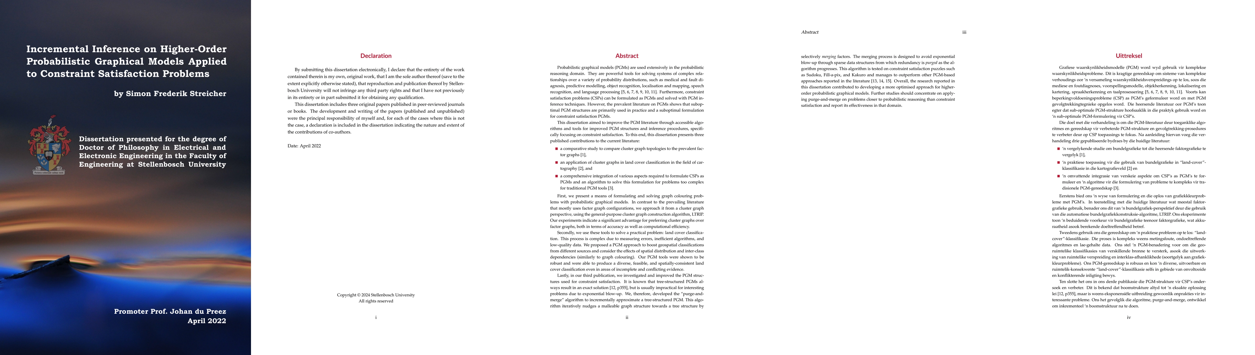 Probabilistic graphical models (PGMs) are tools for solving complex probabilistic relationships. However, suboptimal PGM structures are primarily used in practice. This dissertation presents three contributions to the PGM literature. The first is a comparison between factor graphs and cluster graphs on graph colouring problems such as Sudokus - indicating a significant advantage for preferring cluster graphs. The second is an application of cluster graphs to a practical problem in cartography: land cover classification boosting. The third is a PGMs formulation for constraint satisfaction problems and an algorithm called purge-and-merge to solve such problems too complex for traditional PGMs.
