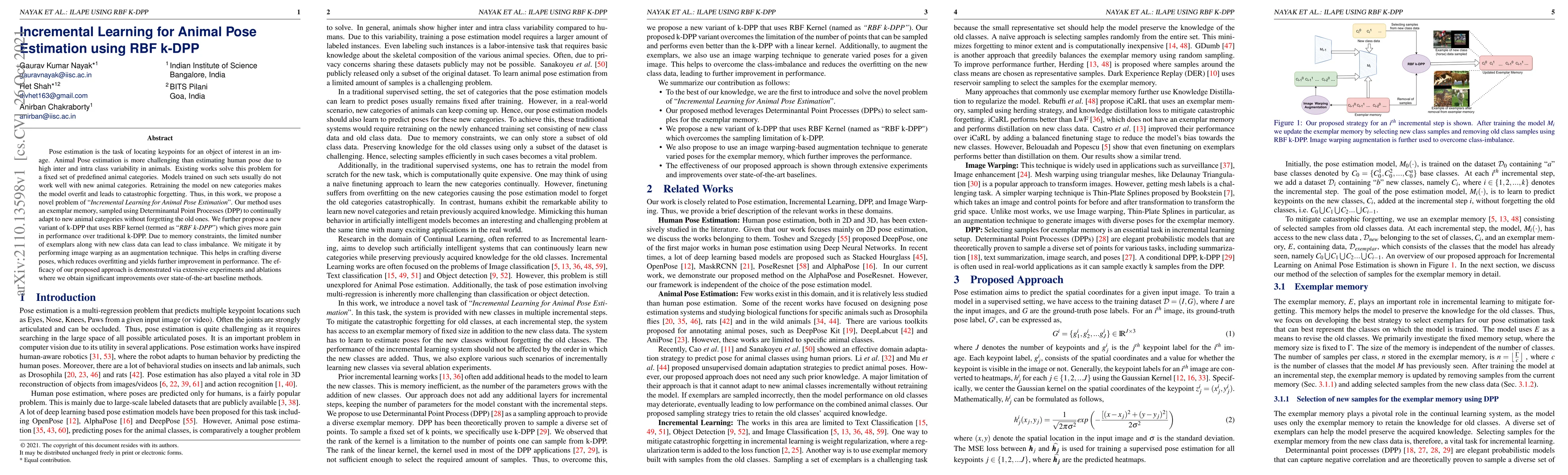 This paper proposes a new approach to animal pose estimation called incremental learning using RBF k-DPP, which adapts to new categories without forgetting old ones, achieving significant improvements over state-of-the-art methods.
