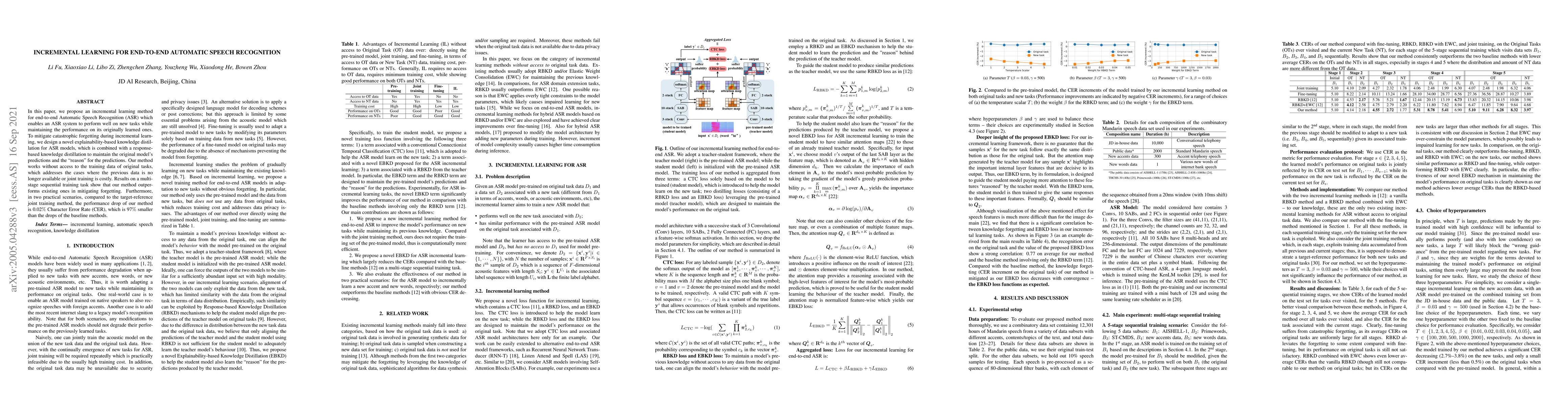 This paper proposes an incremental learning method for end-to-end Automatic Speech Recognition (ASR) that prevents catastrophic forgetting by using explainability-based and response-based knowledge distillation. The method achieves better performance than baselines in mitigating forgetting and maintaining original model predictions.