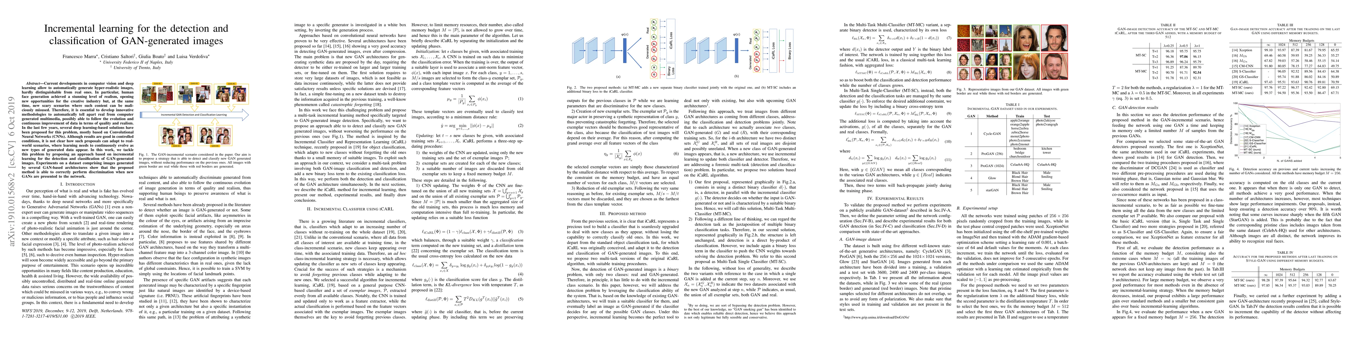 Current developments in computer vision and deep learning allow to automatically generate hyper-realistic images, hardly distinguishable from real ones. In particular, human face generation achieved a stunning level of realism, opening new opportunities for the creative industry but, at the same time, new scary scenarios where such content can be maliciously misused. Therefore, it is essential to develop innovative methodologies to automatically tell apart real from computer generated multimedia, possibly able to follow the evolution and continuous improvement of data in terms of quality and realism. In the last few years, several deep learning-based solutions have been proposed for this problem, mostly based on Convolutional Neural Networks (CNNs). Although results are good in controlled conditions, it is not clear how such proposals can adapt to real-world scenarios, where learning needs to continuously evolve as new types of generated data appear. In this work, we tackle this problem by proposing an approach based on incremental learning for the detection and classification of GAN-generated images. Experiments on a dataset comprising images generated by several GAN-based architectures show that the proposed method is able to correctly perform discrimination when new GANs are presented to the network